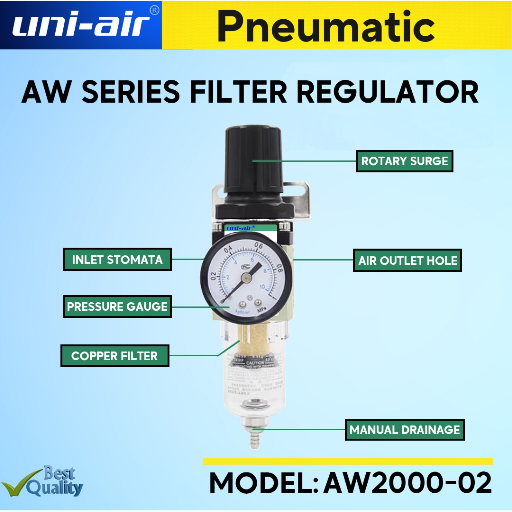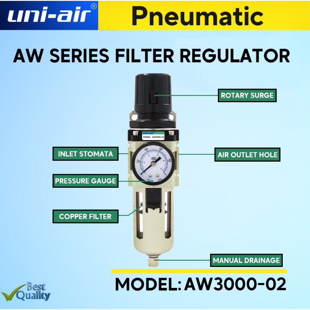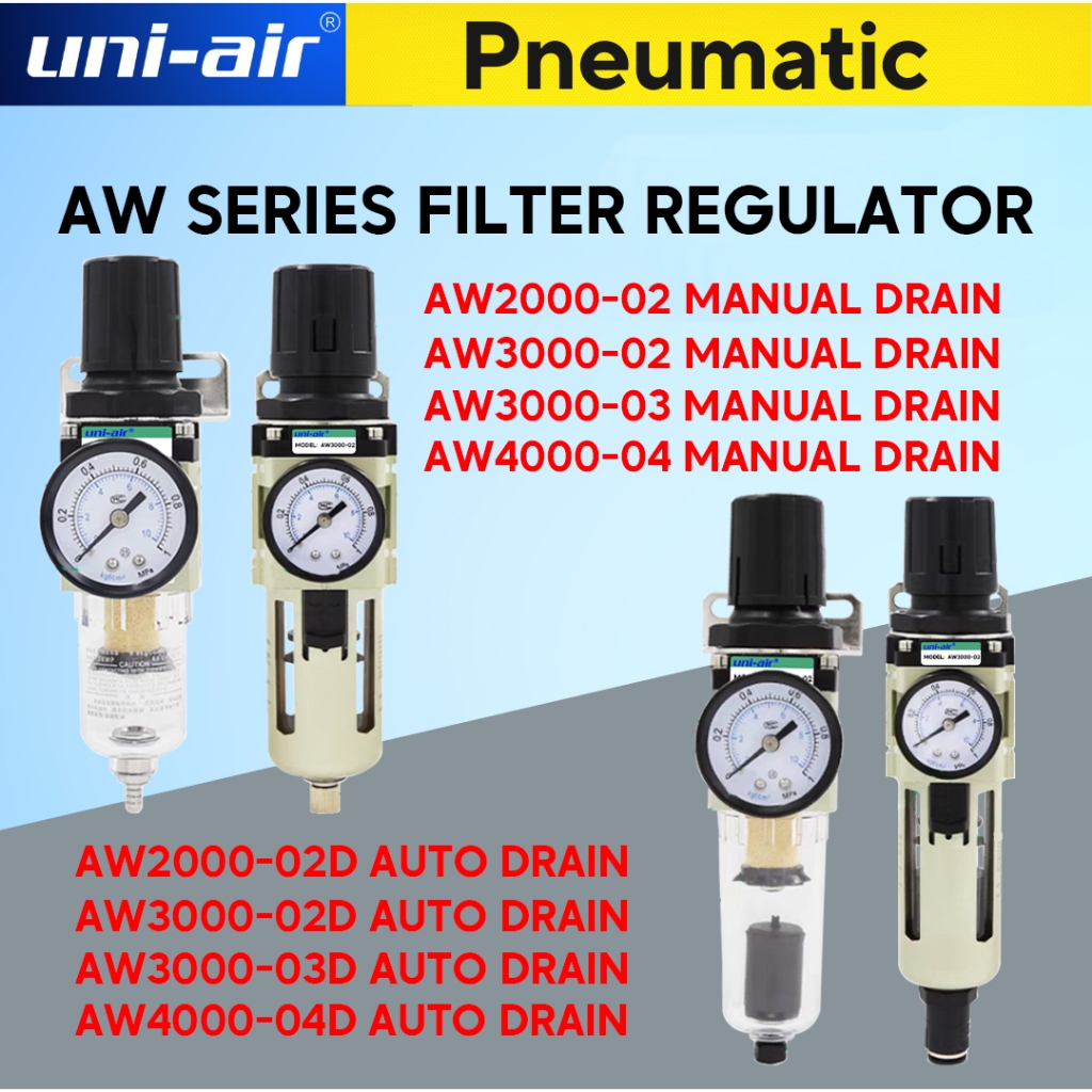 Uni-Air Pressure Regulator Air Oil Water Seperator Filter For Compressor (Manual Drain) AW SERIES