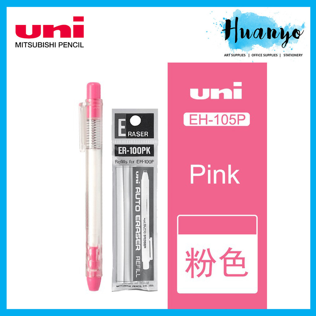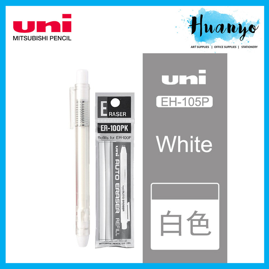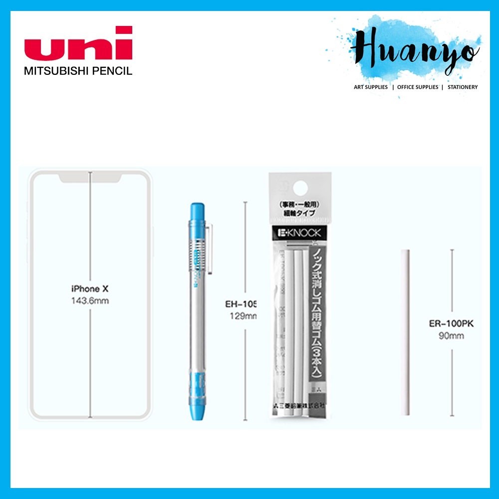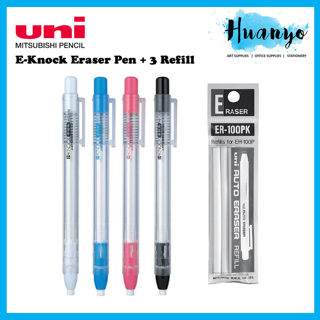 Uni E-Knock Refillable Eraser Pen + 3 Refill (Black/Light Blue/Pink/White) EH-100P ER-100PK