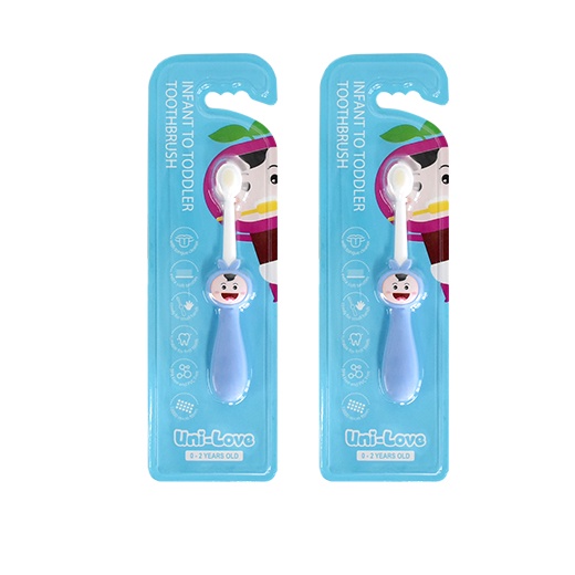 Uni-Love Infant to Toddler Toothbrush (0-2 Years Old) BLUE Pack of 2