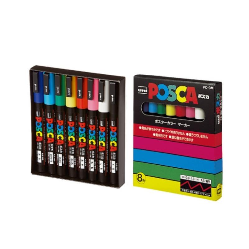 Uni Posca Markers Set of 8 Colors Acrylic Paint Markers [PC5M8C, PC8K8C, PC17K8C, PC1M8C, PC3M8C]