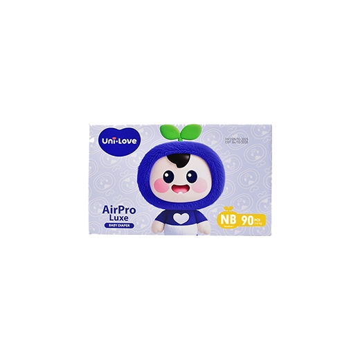 UniLove AirPro Luxe Baby Diaper 90's (Newborn) Box of 1 - Hypoallergenic | Ultrasoft 3D Top Sheet