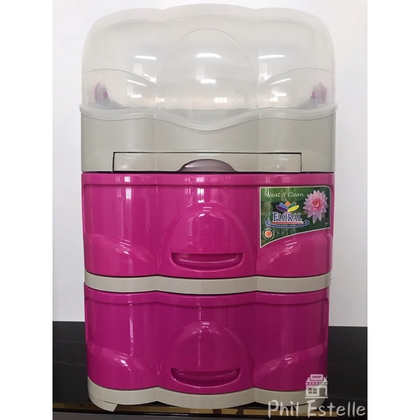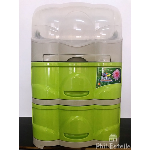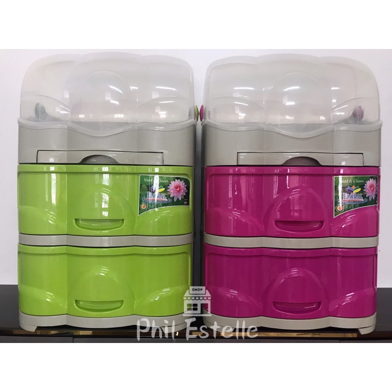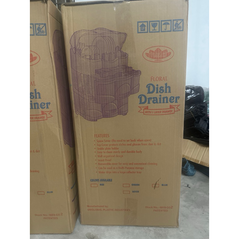 Uniglobal #8809-DD2 Floral Dish Rack Dish Drainer Plate Organizer cabinet with water drainer