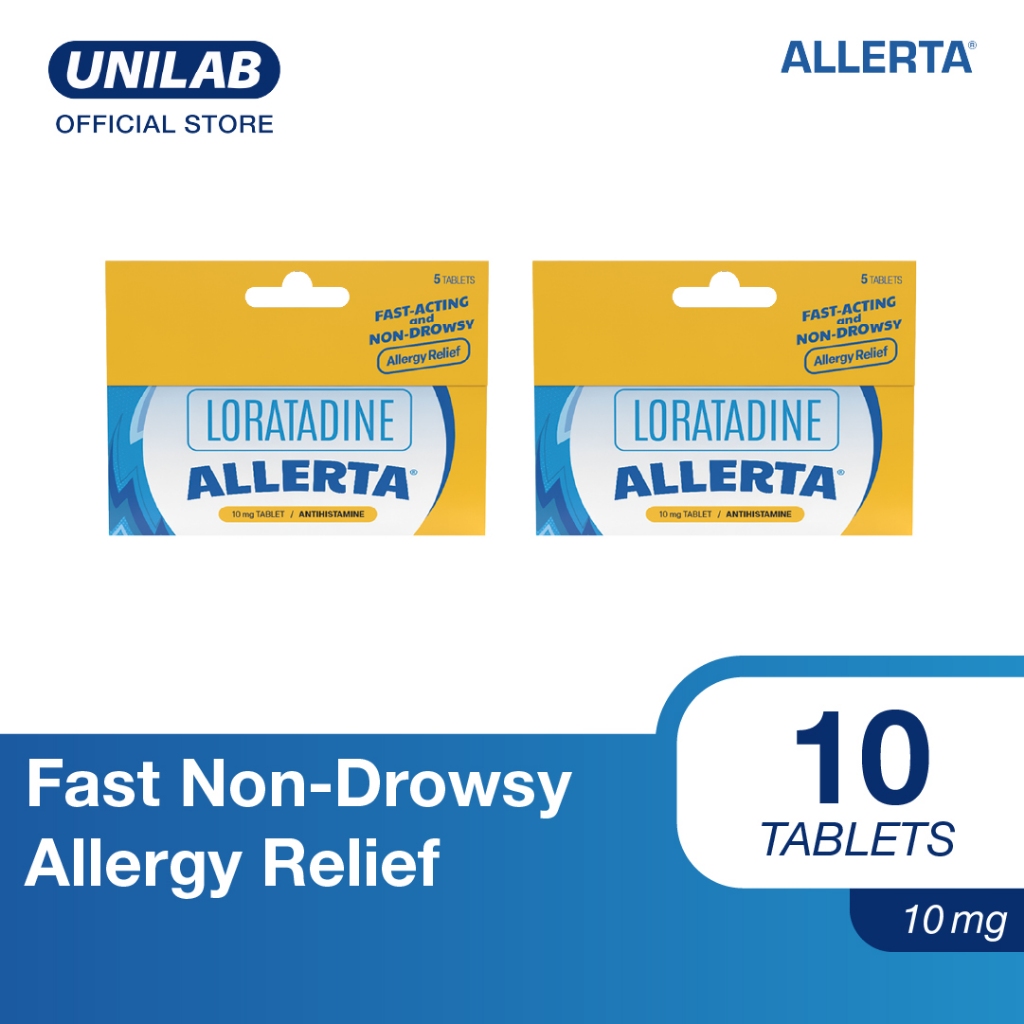 Unilab Allerta 10mg 10 Loratadine Tablets - For Fast Non-Drowsy Relief From Allergy and Its Symptoms