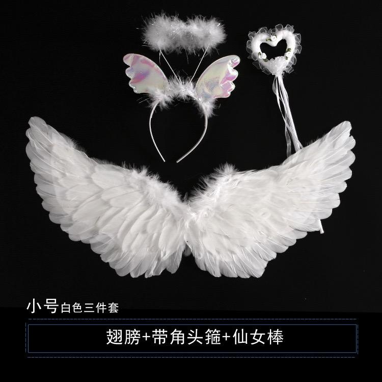 Unikids White Angel Feather Wings for Kids Photography Props Angel Wings Costume Headband Fairy Wand 1 2 Year Old Birthday Halloween Party