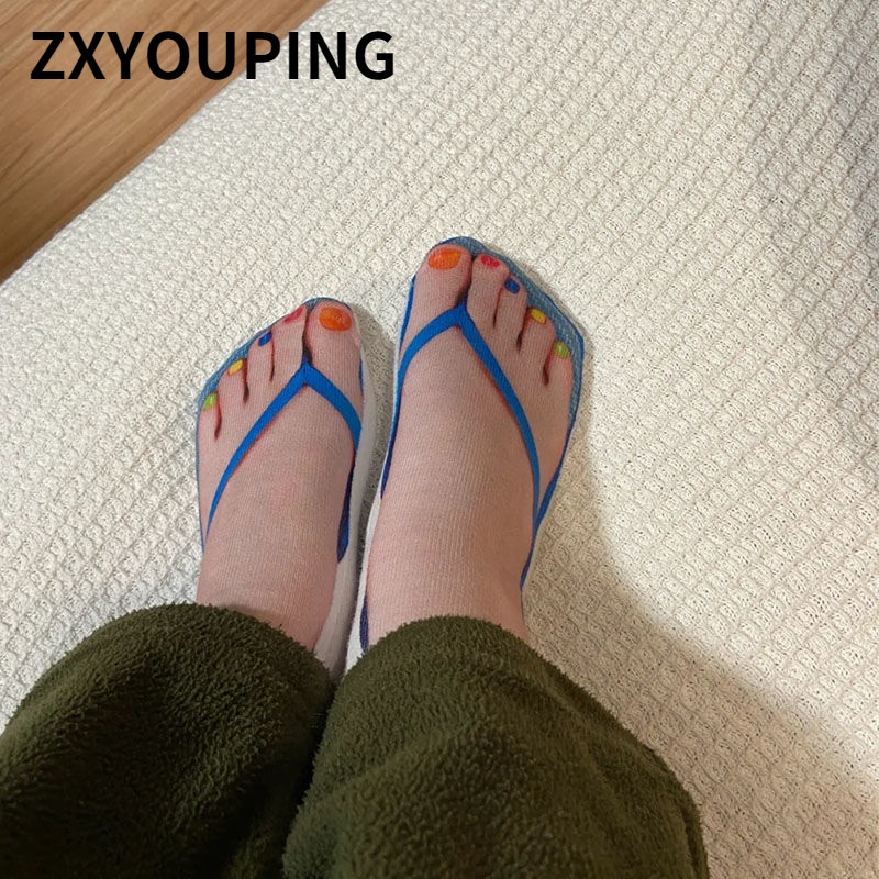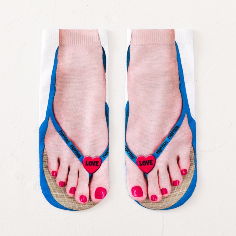 Unisex Cotton 3D Printed Ankle Socks Creative Print Flip Flops Socking Novelty Personality Funny Low Cut Slippers Sock