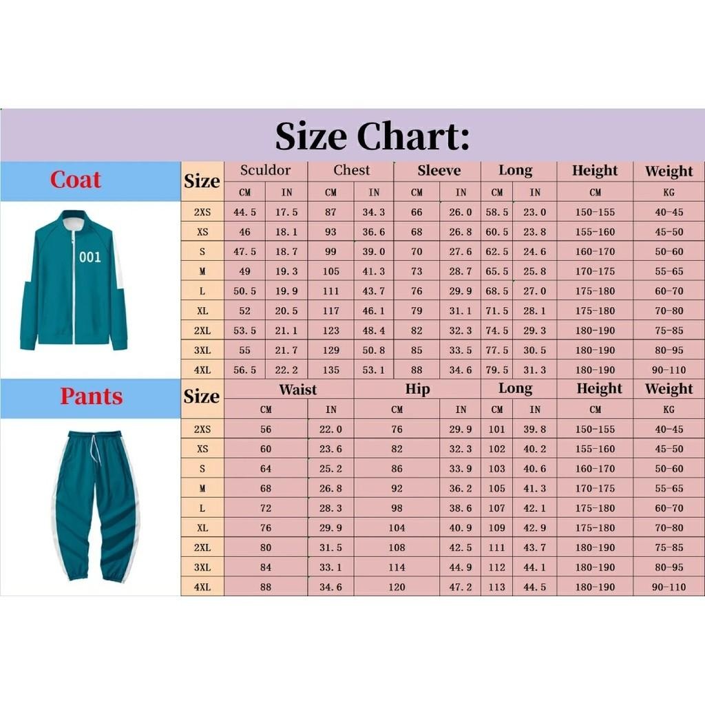 Unisex Tracksuit Squid Game Cosplay Costume Men Women Zipper Jackets Tracksuits Halloween Party Outfit Sweatshirt and Pants