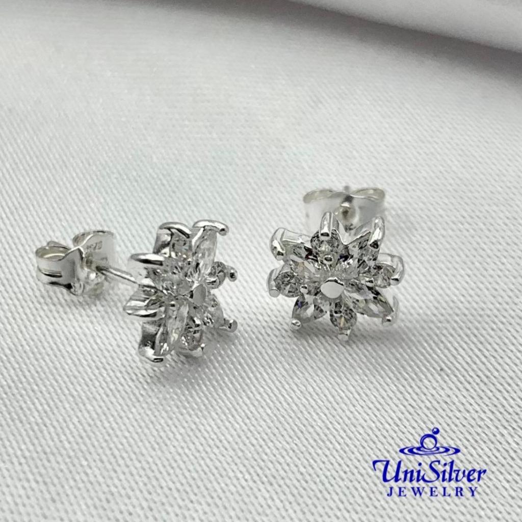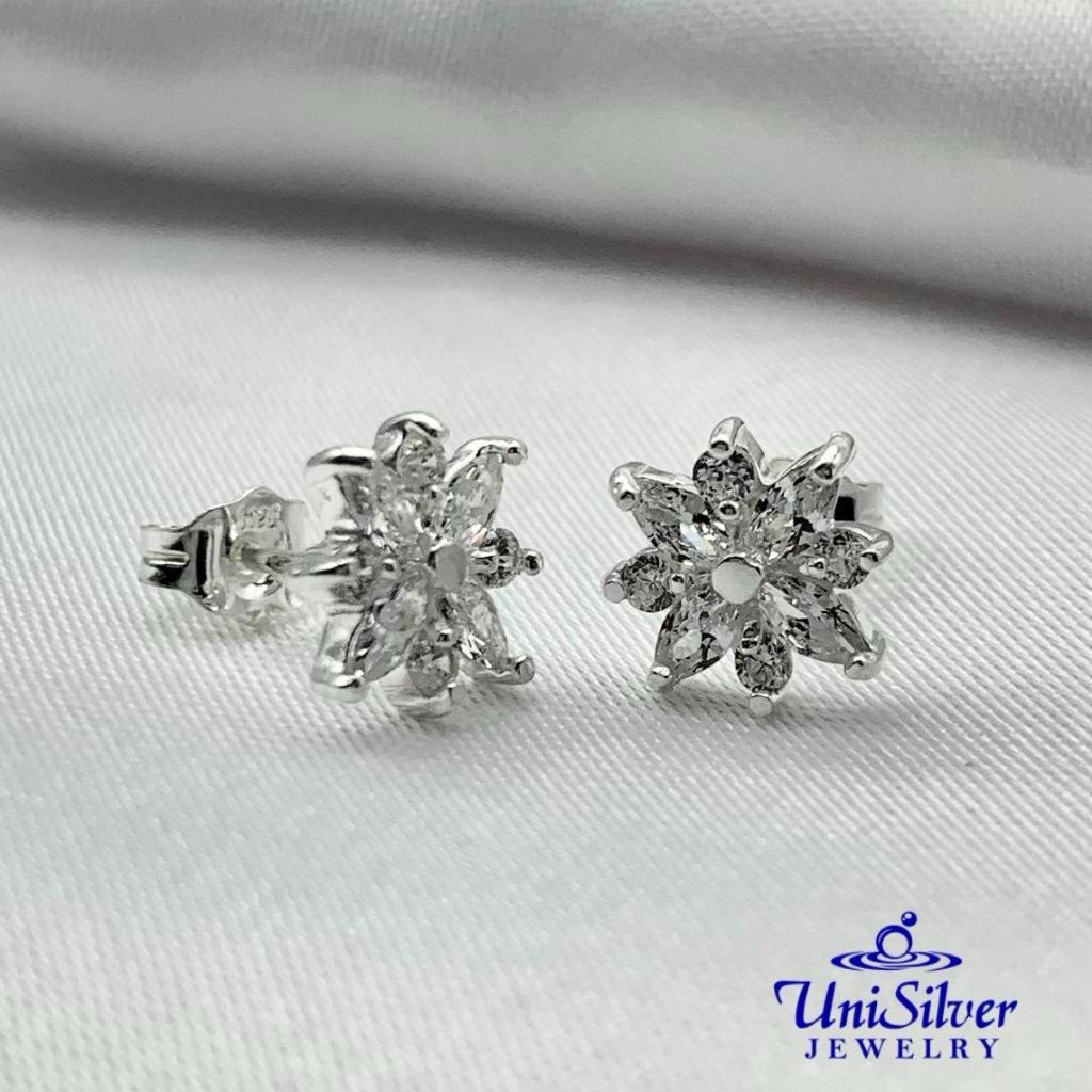 Unisilver 925 Sterling Silver Flower Earrings Stud (ES265-1001)