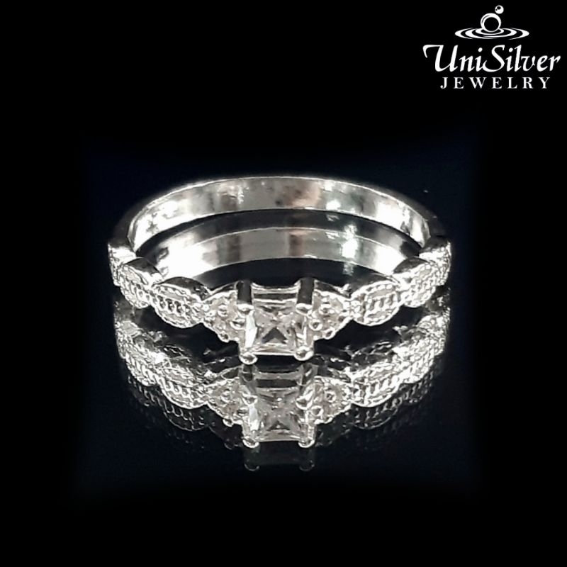 Unisilver 925 Sterling Silver Oval Link Band Ring With Princess Cut Center Stone (RS614-1001)