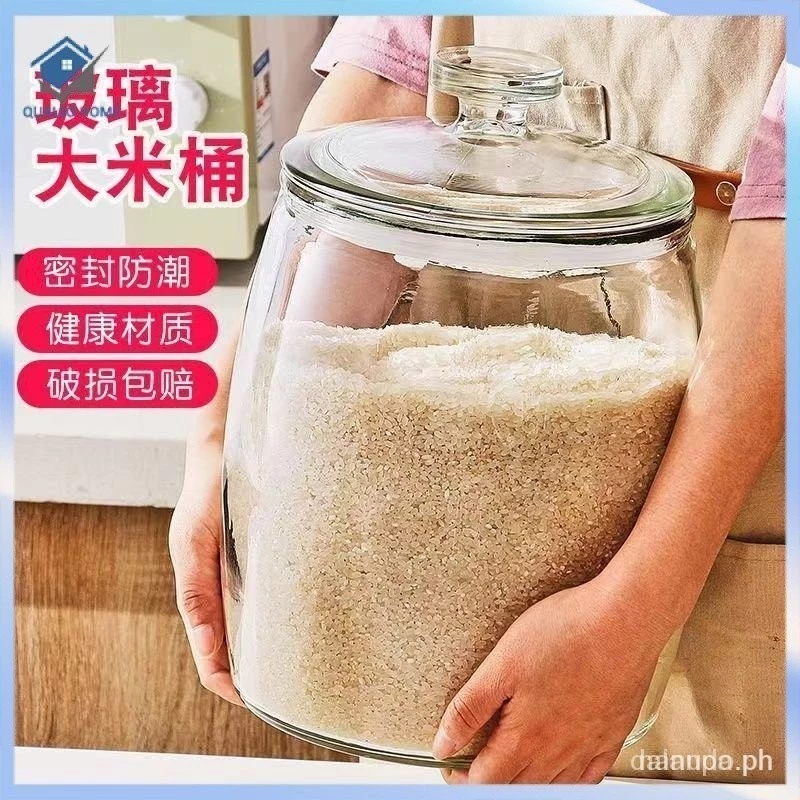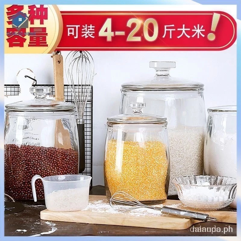 Large Rice Bucket Storage Box Flour Bucket Jar Glass Bottle Sealed Storage Jar Kitchen Food Storage