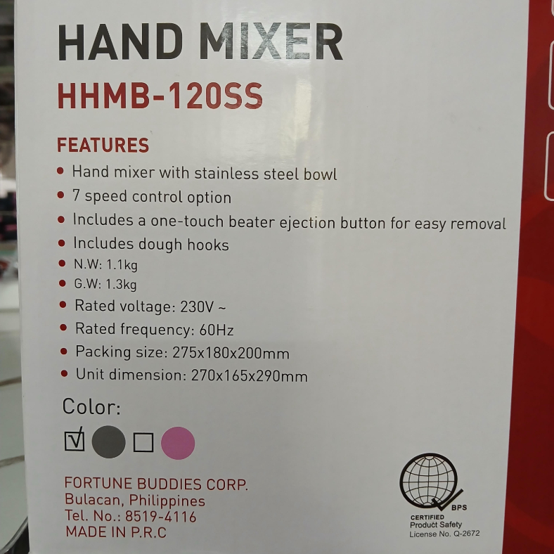 Hanabishi Hand/Stand Mixer HHMB-120SS