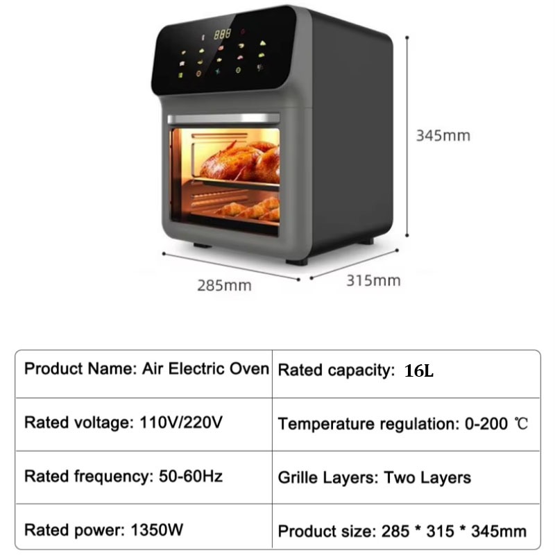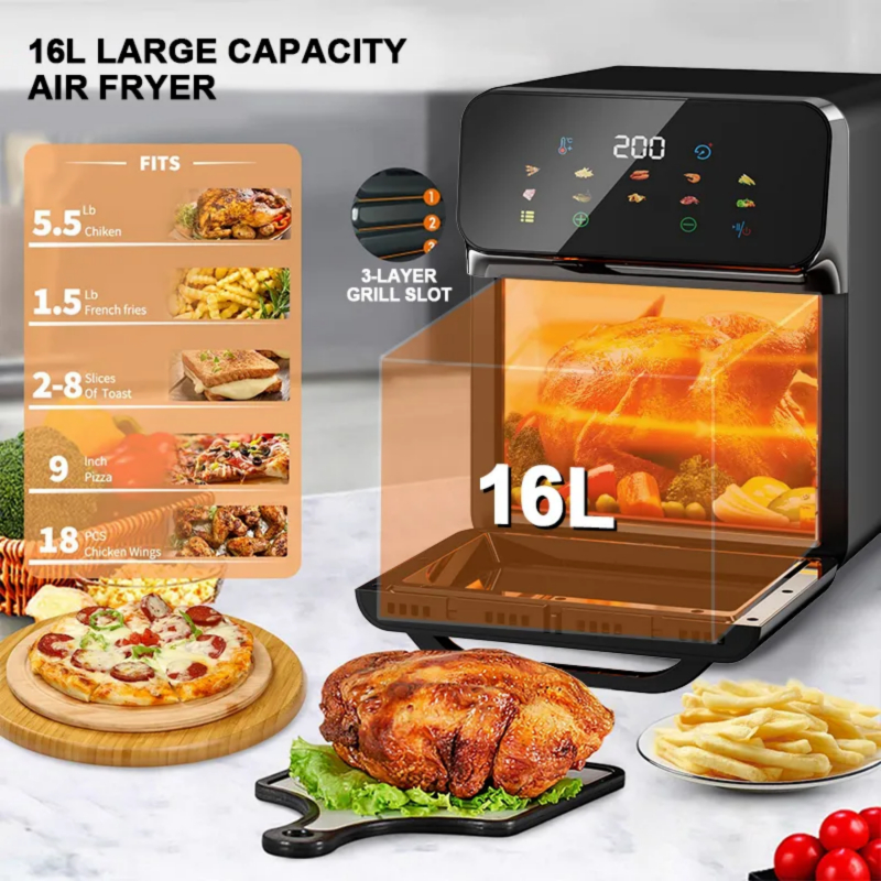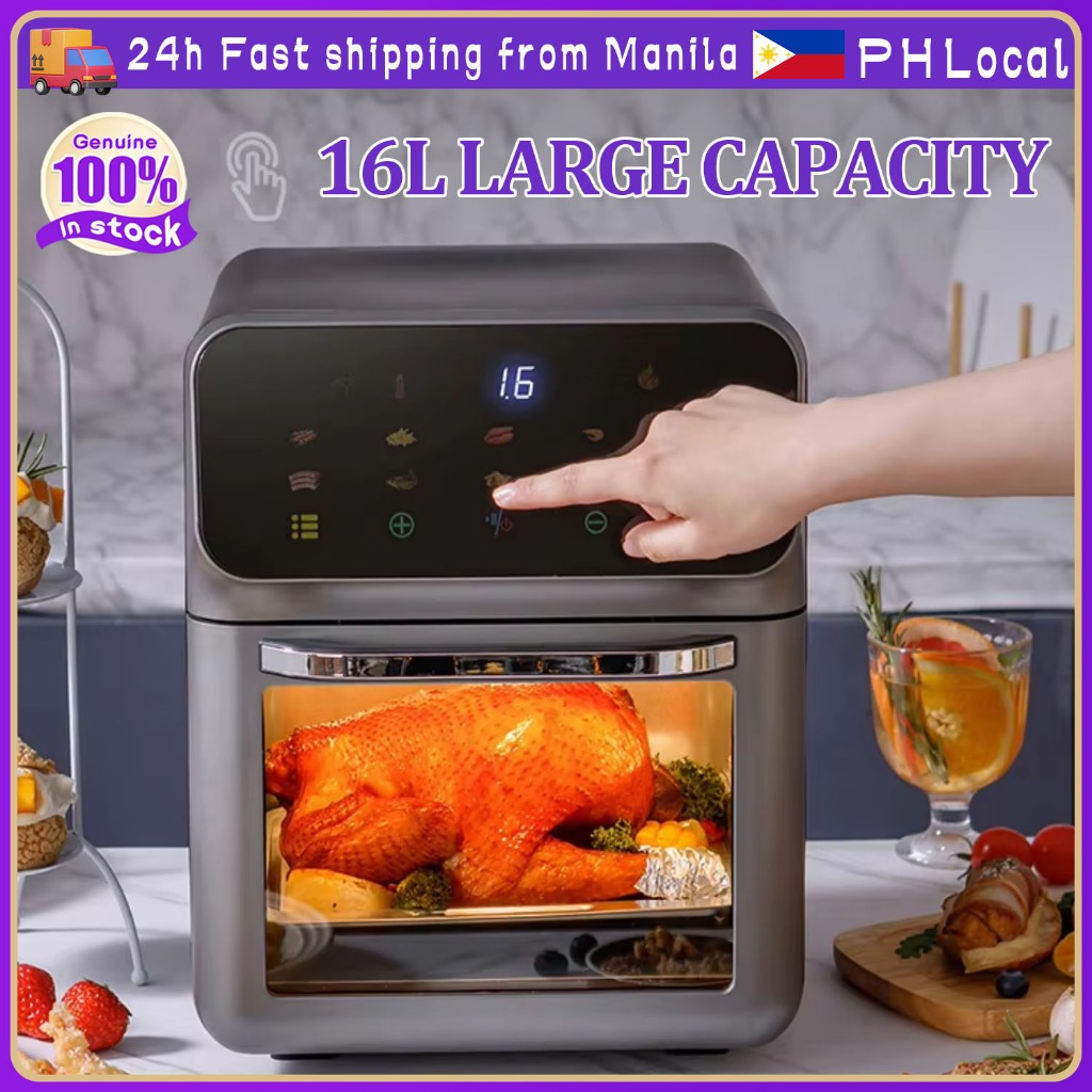 【COD】- 16L Air Fryer Oven Large Capacity Electric Air Fryers Digital Air Fryer Oven Inverter With Visual Window Electric Fryer Oven Black