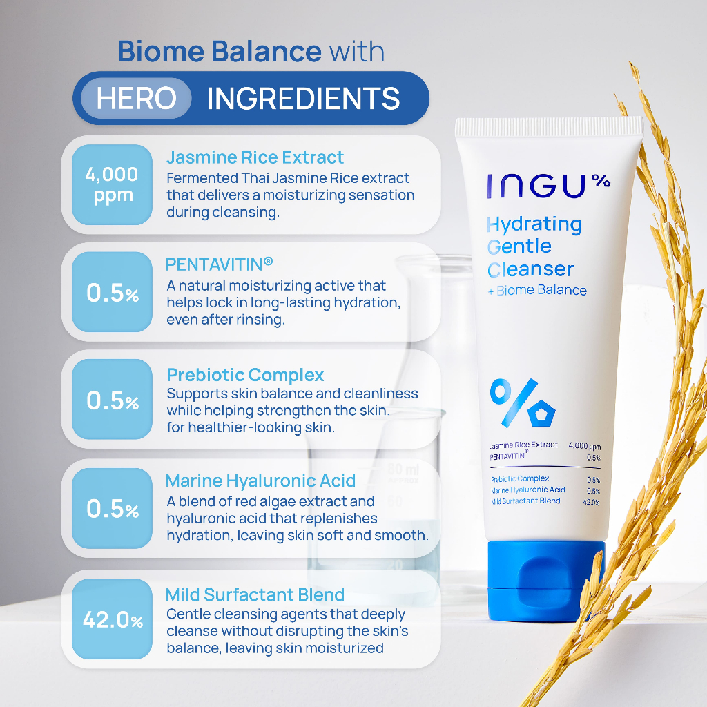 (New Formula)INGU Hydrating Gentle Cleanser + Biome Balance Facial For People With Sensitive Skin.