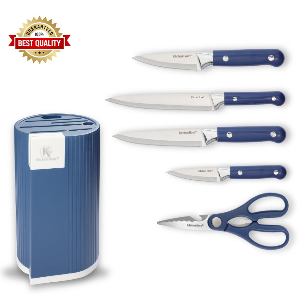 Knife Set 6pcs with universal Knife Block/Storage Multi-Purpose Premium Quality Sharp and Precise