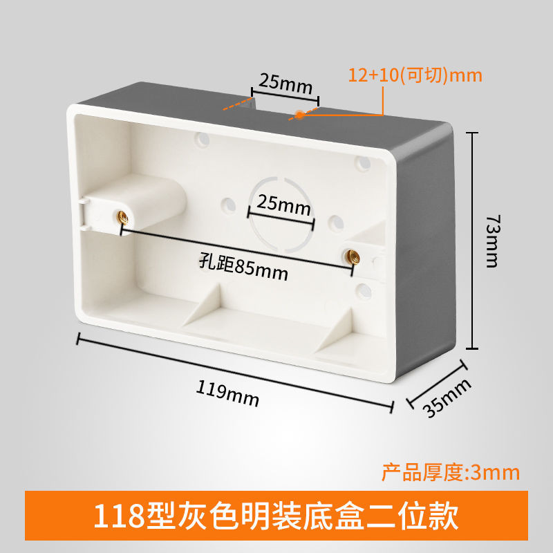 Universal 118 Type Clear Box Switch Socket Clear-Mounted Bottom Box Gold Two-Position Three-Position Four-Position Gray C