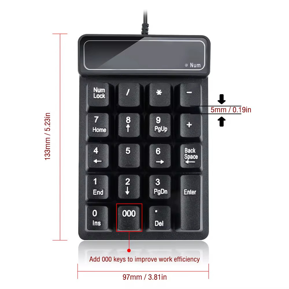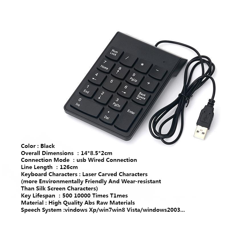 Universal 19 Keys Digital Number Pad Numpad Keyboard Mini USB Wired Numeric Keypad for Windows XP/7/8 Laptop PC Office