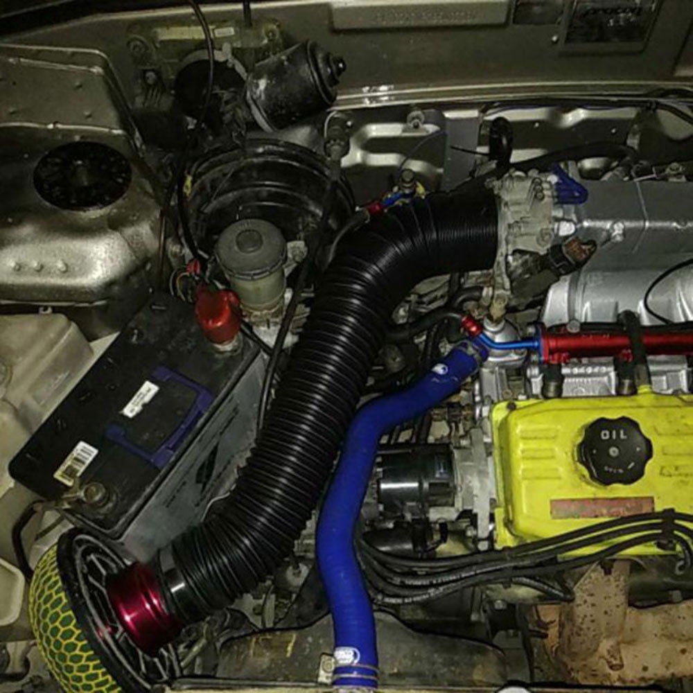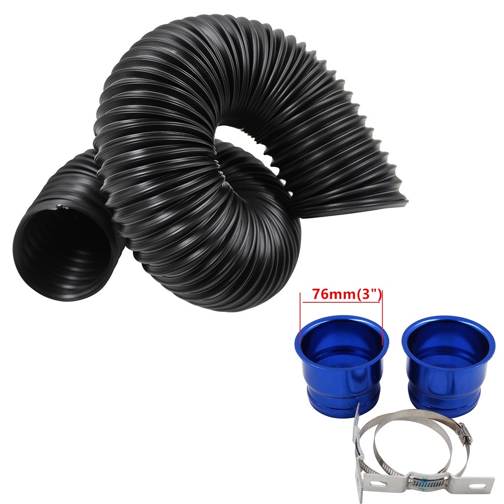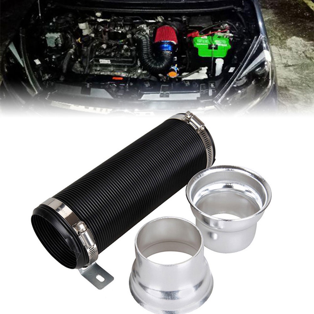 Universal 1M Flexible Car Engine Cold Air Intake Hose Inlet Ducting Feed Tube Pipe With Connector & Braket