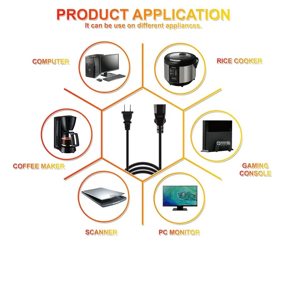 Universal 3 Prong Power Extension cords Flat Pin Plug Power Cable for PC Computer 1.5 Meters Long