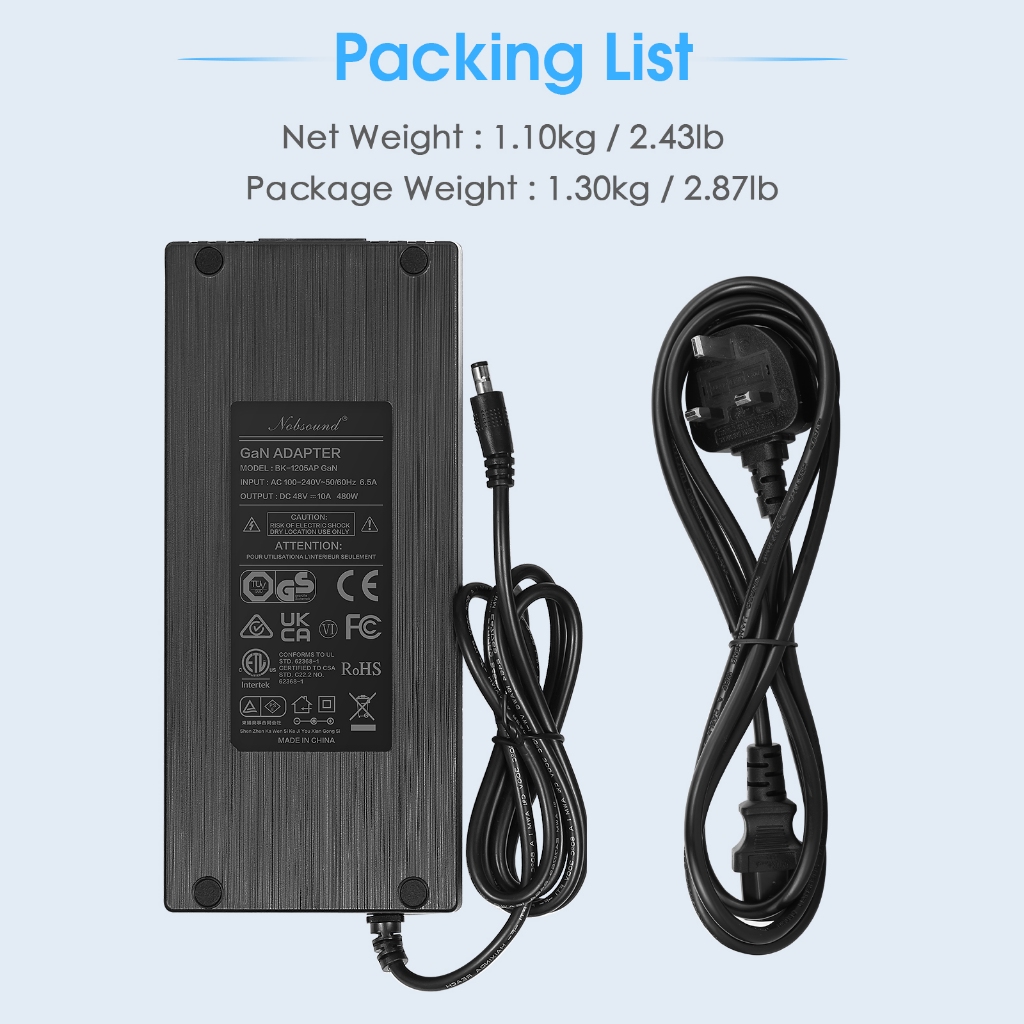 Universal 48V10A DC Power Supply Adapter 480W 100-240V Transformer for Amplifier