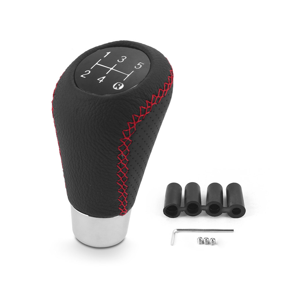 Universal 5 Speed Gear Shift Knob Manual Leather Red Stitch M8 M10 M11 M12 Car Gear Stick Shift Knob Lever Manual Transmission