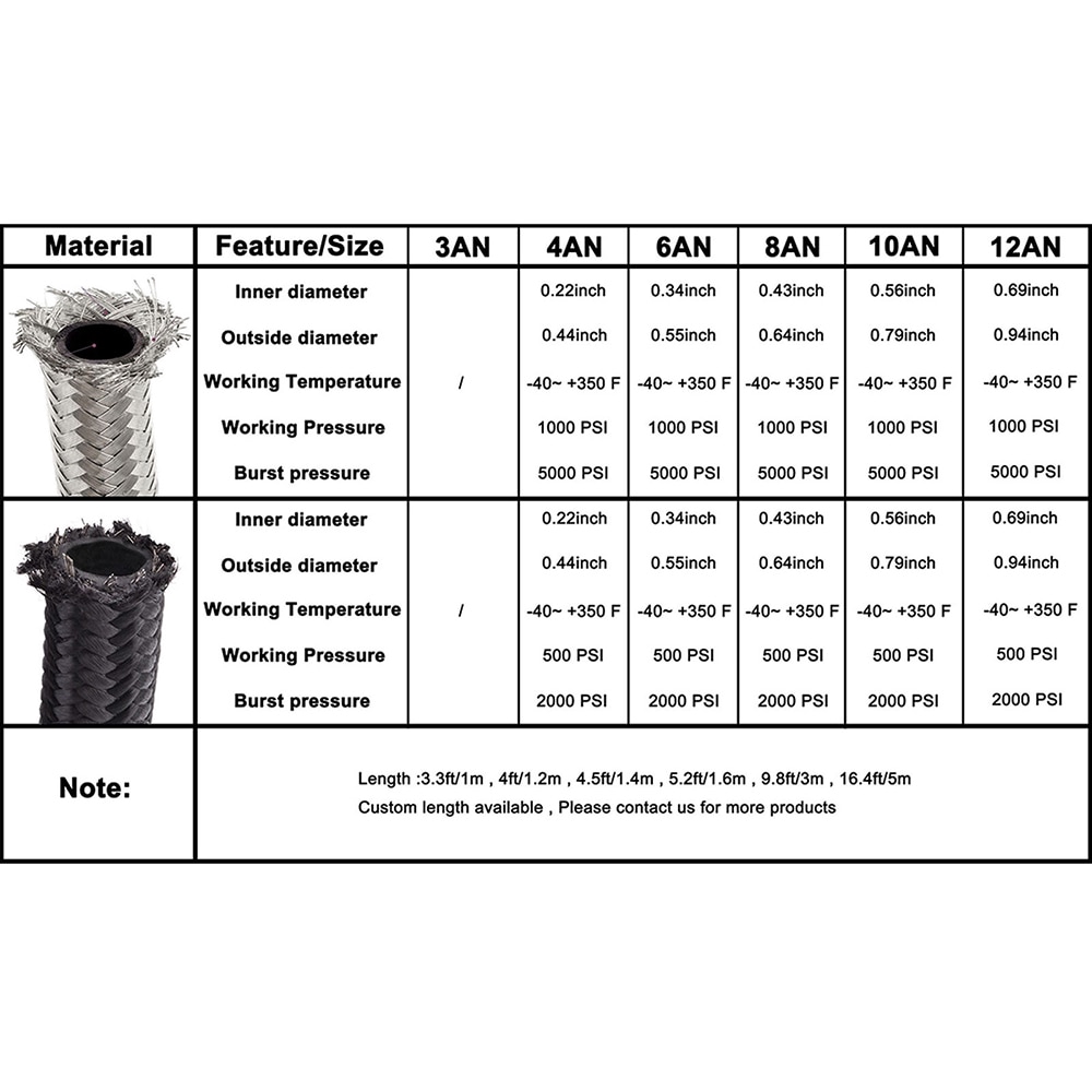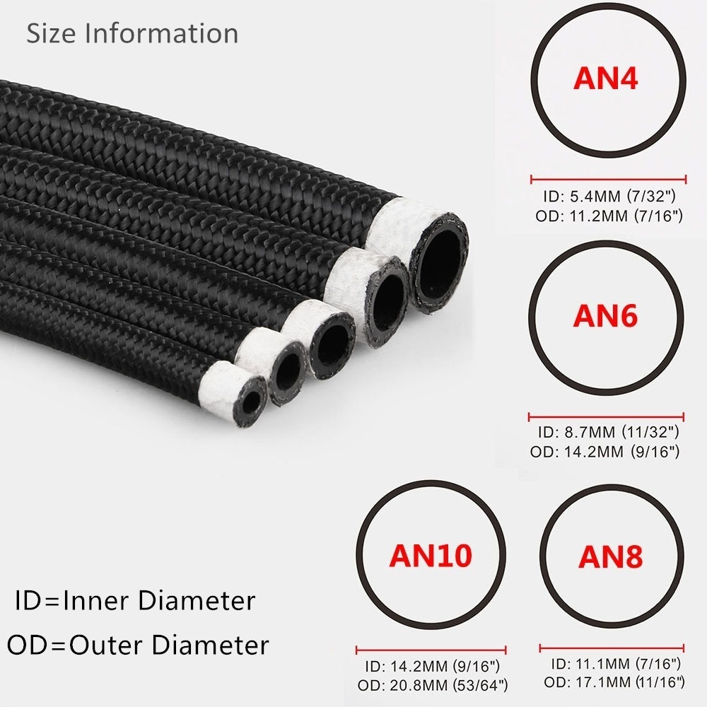 Universal AN4 AN6 AN8 AN10 AN12 AN16 AN20 Braided Oil Line Fuel Hose Oil Gasoline Brake Line Hose Nylon Fuel Line Hose