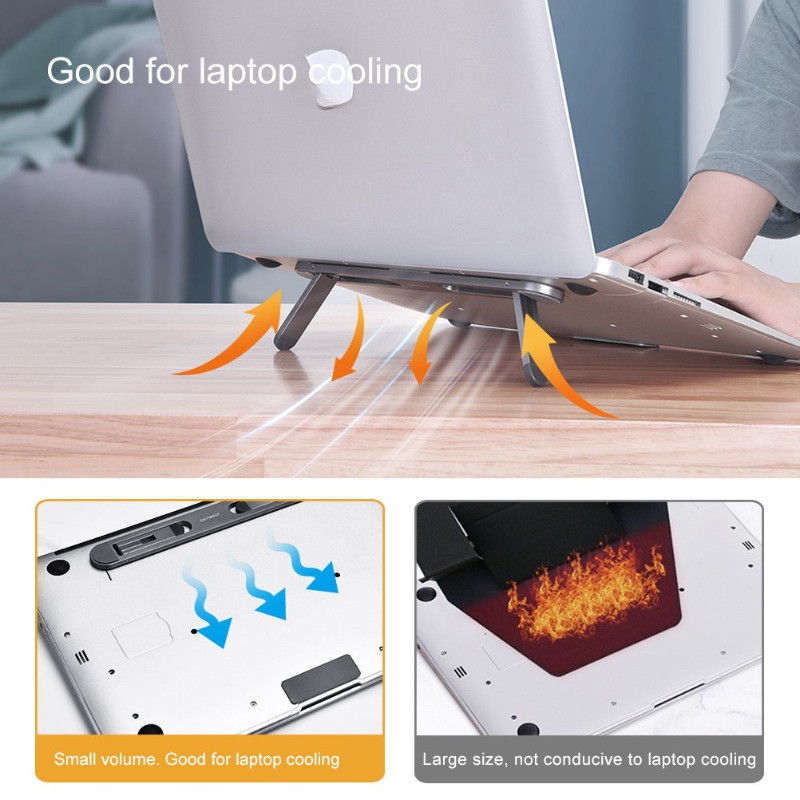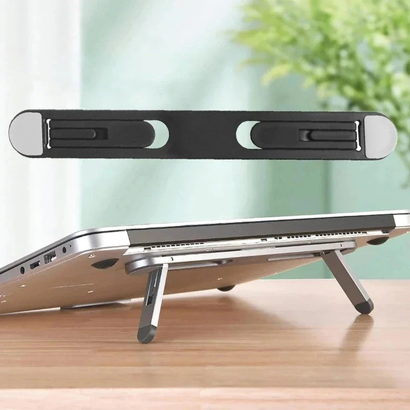 Universal Adjustable Black Plastic Laptop Stand Holder - Portable Foldable Desktop Cooling Stand - Laptop Desktop Increase Height - for Home Office