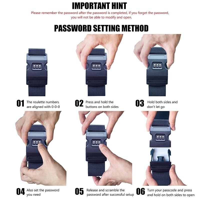 Universal Adjustable Luggage Strap Travel Suitcase Belt with Password Lock