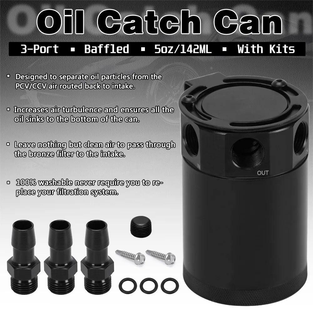 Universal Baffled 3-Port Oil Catch Can/Tank/Air-Oil Separator