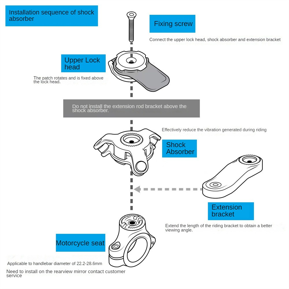 Universal Bicycle Motorcycle Handlebar Mount Rearview Mirror Expander Vibration Dampener Push Lock