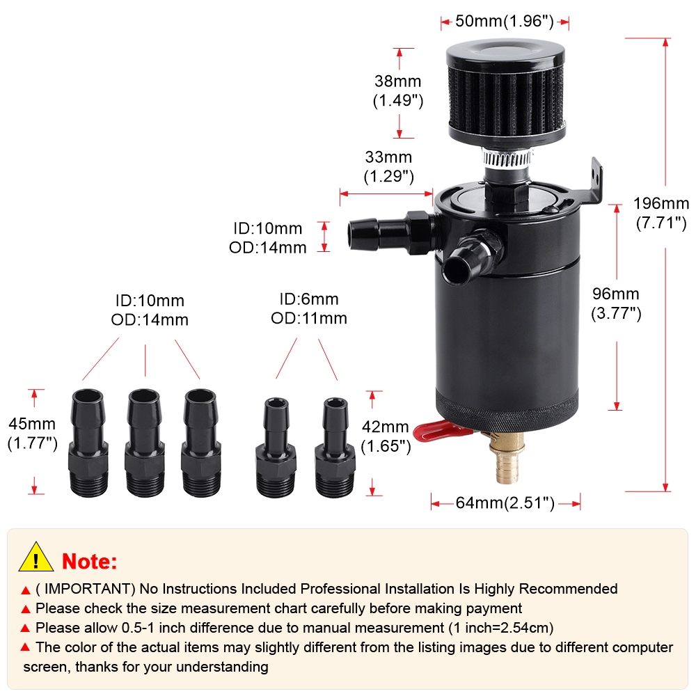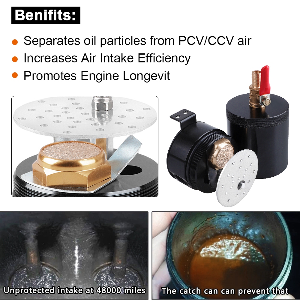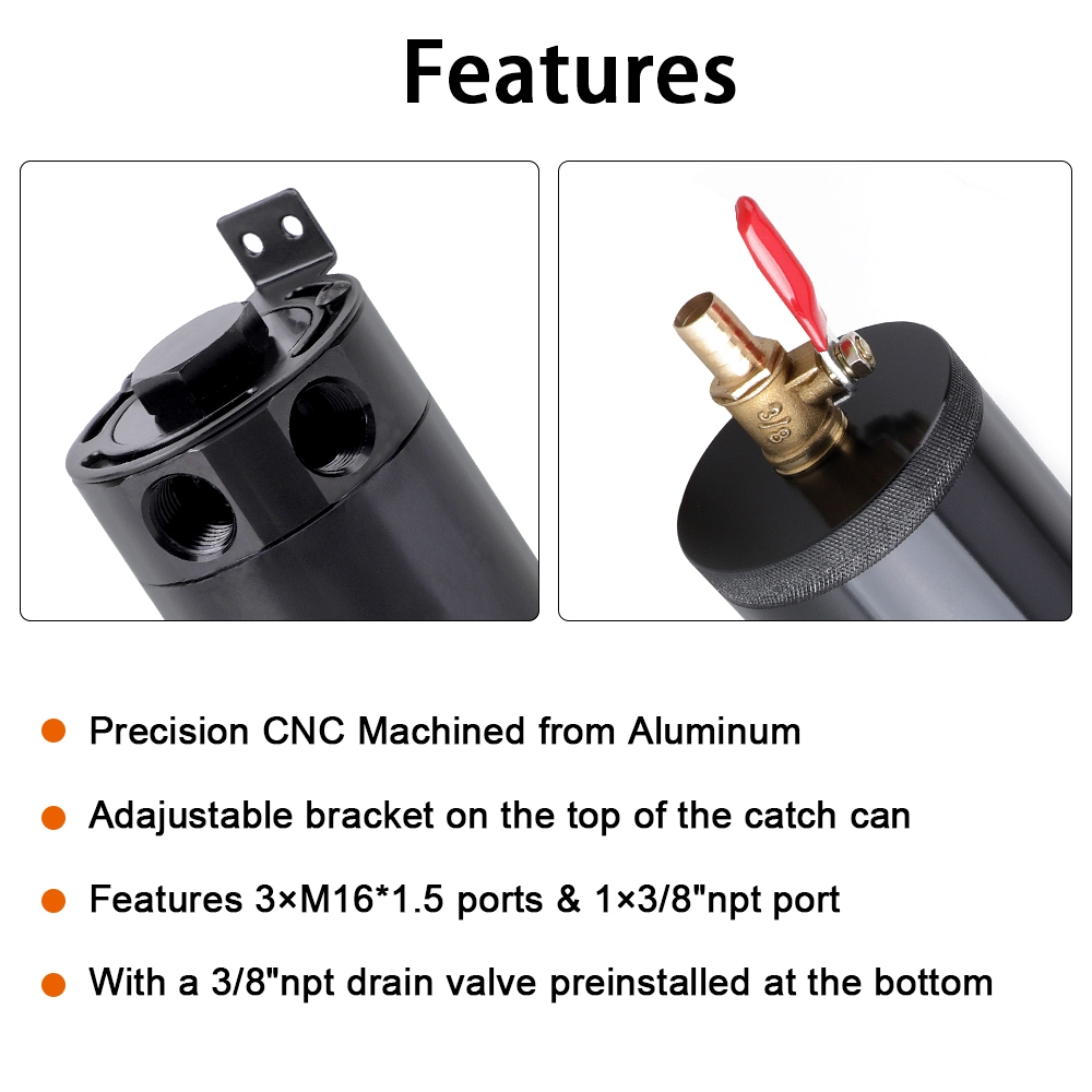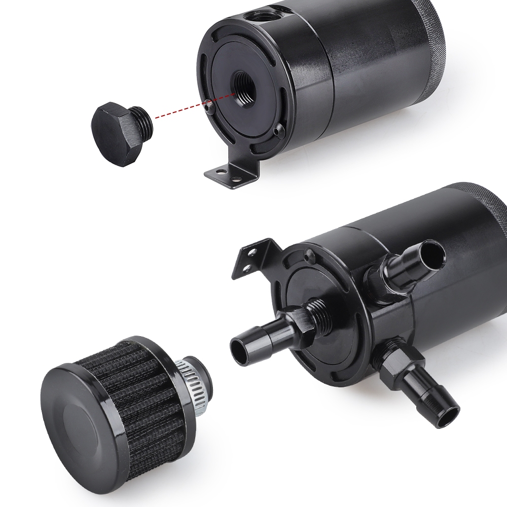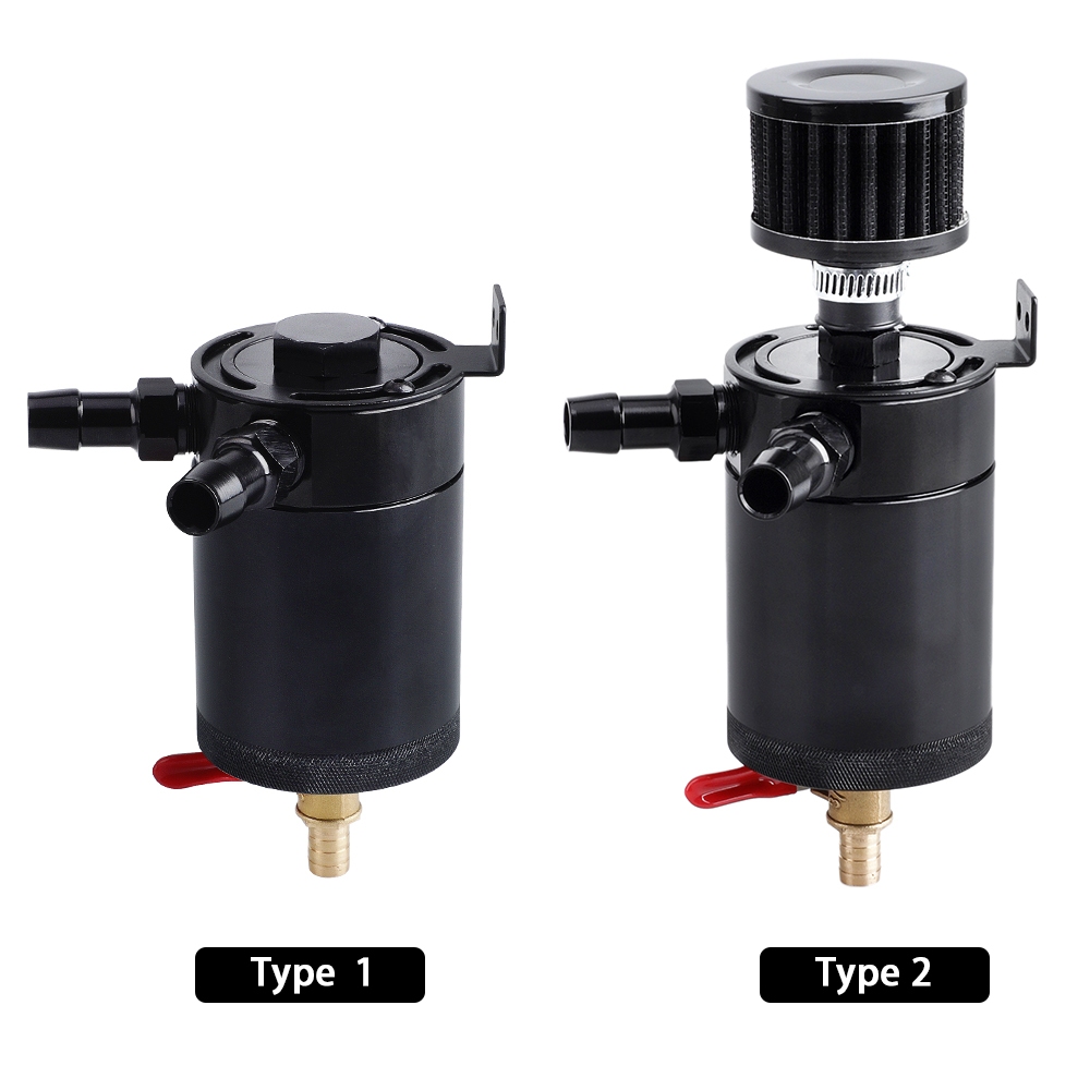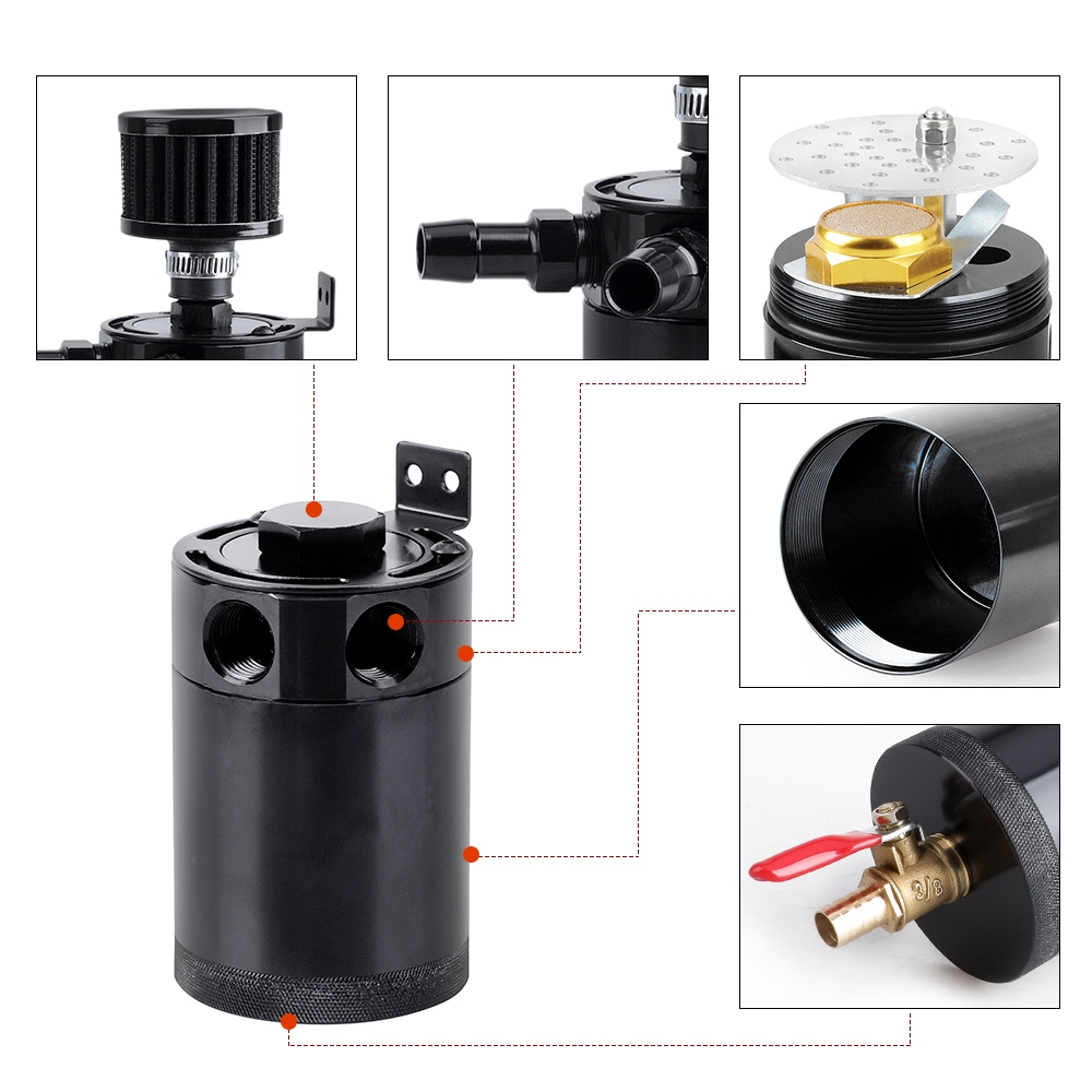 Universal Black Anodized 2 Port Oil Catch Can Tank Fuel Tank Racing Baffled With Drain Valve Air Oil Separator