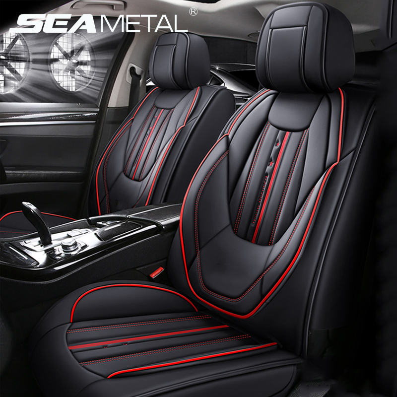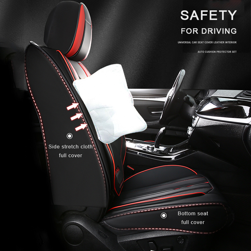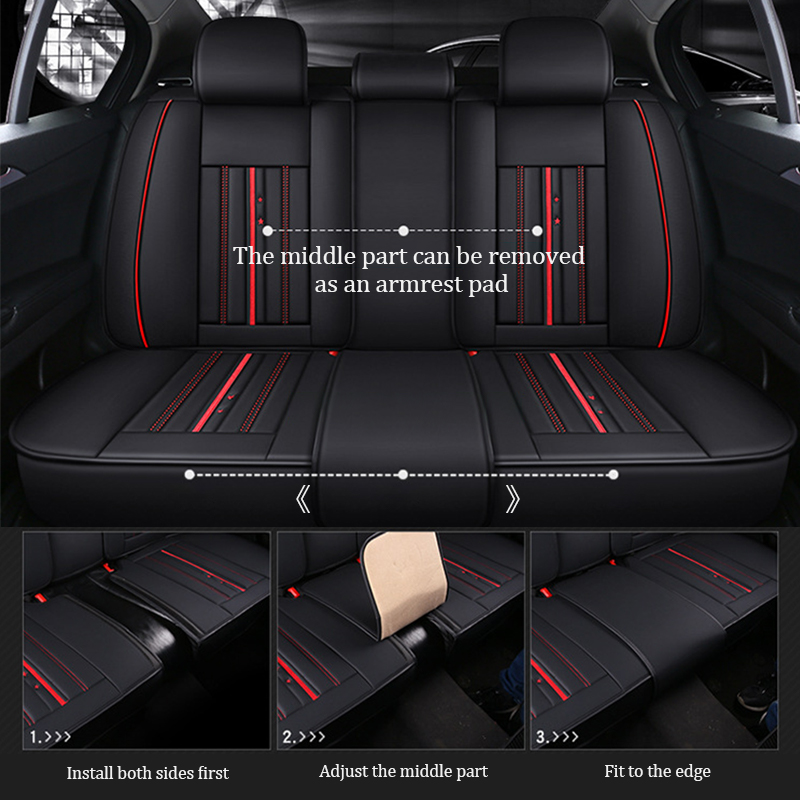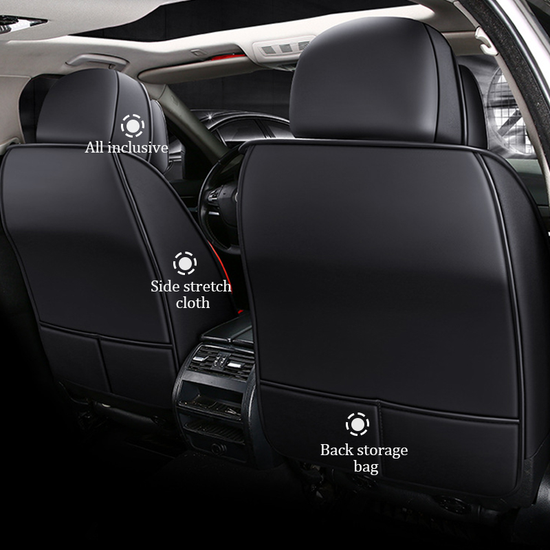Universal Car Seat Cover Leather Front And Rear Auto Cushion with Organizer Pocket for Cars Full Seat Covers