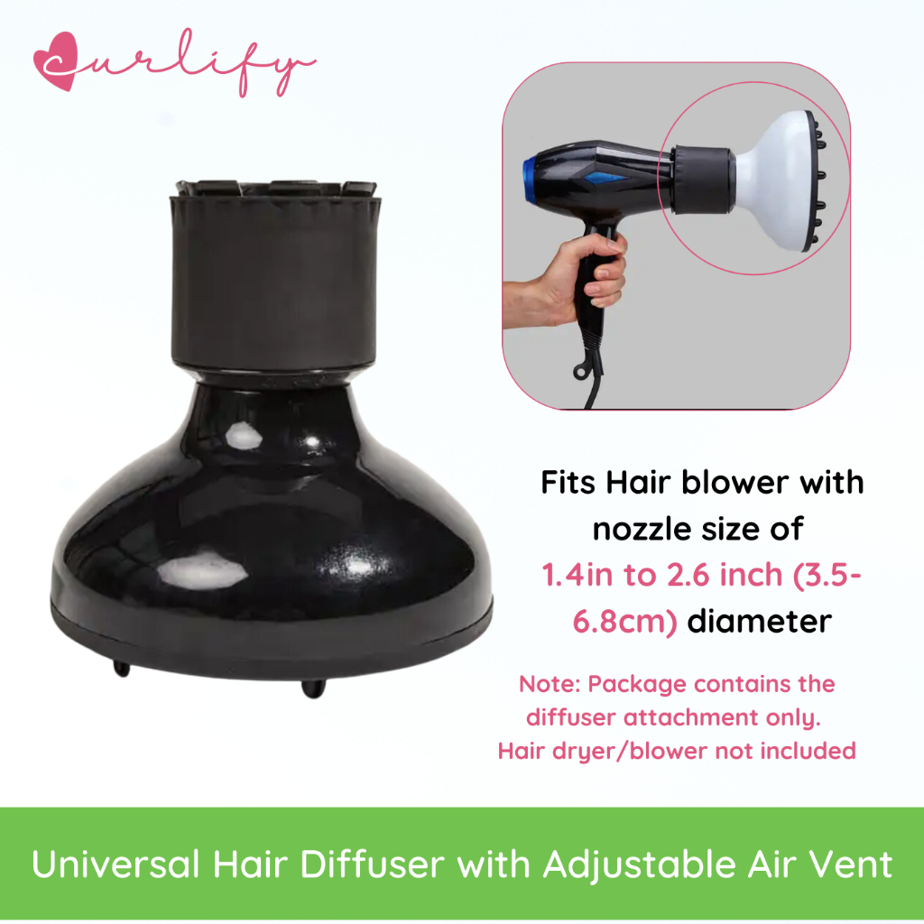 Universal Curly Hair Diffuser with Adjustable Air Vent