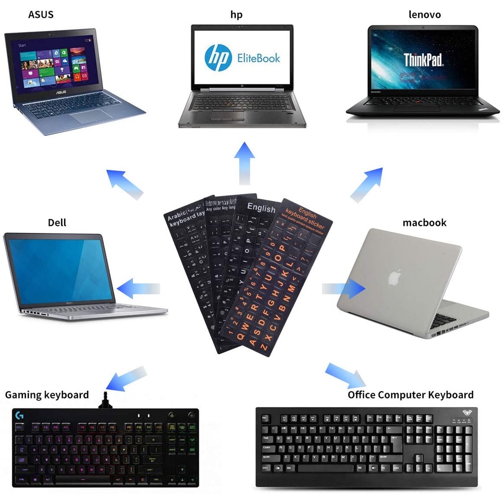 Universal English Keyboard Stickers(Upper CASE), Keyboard Replacement Sticker Black Background with