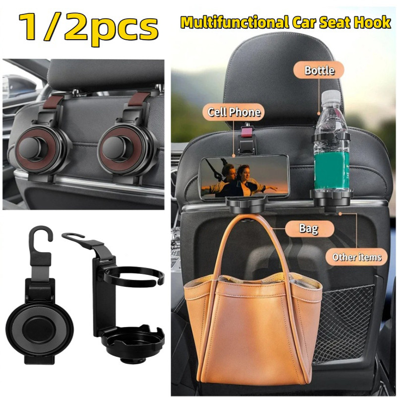 Universal Foldable Car Seat Back Hook 3-in-1 Multifunctional Car Cup Holder Mobile Phone Bracket Flexible Car Seat Headrest Hook for Handbag Umbrella Car Interior Organizer