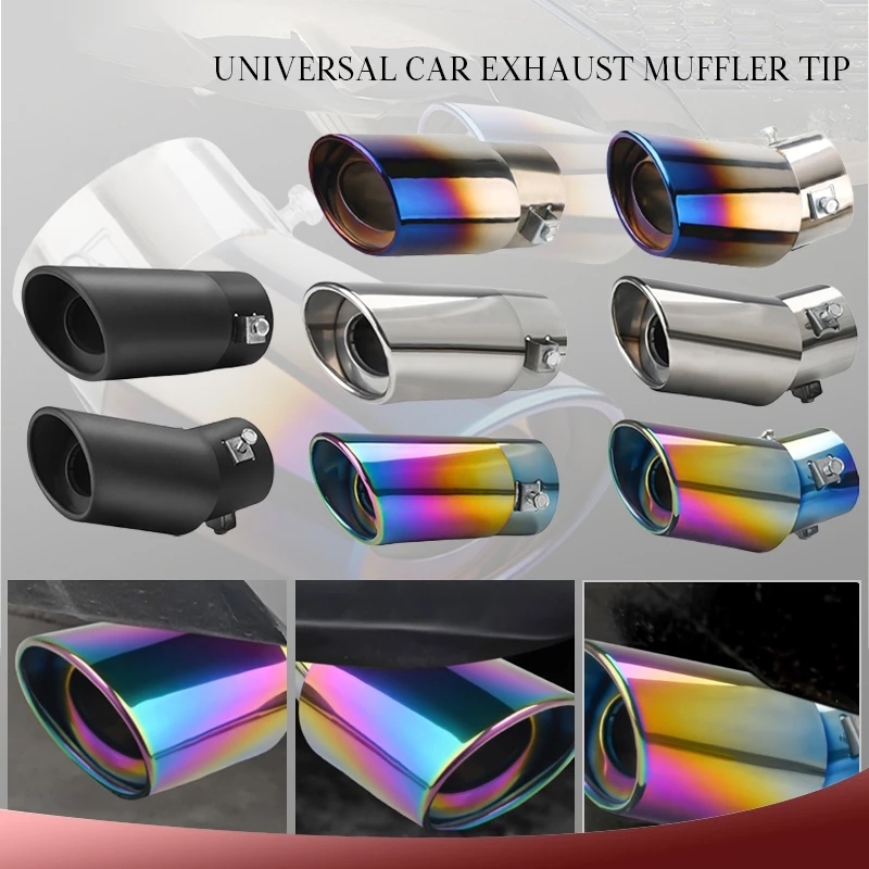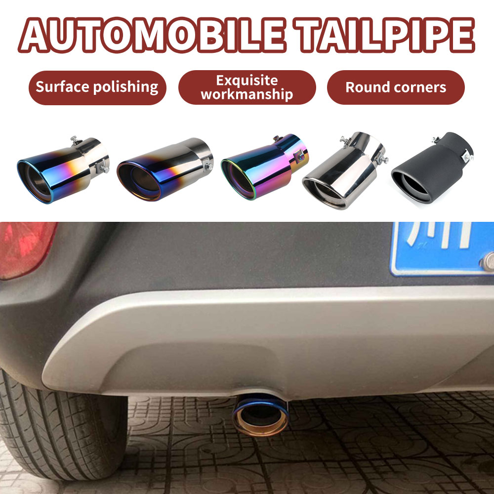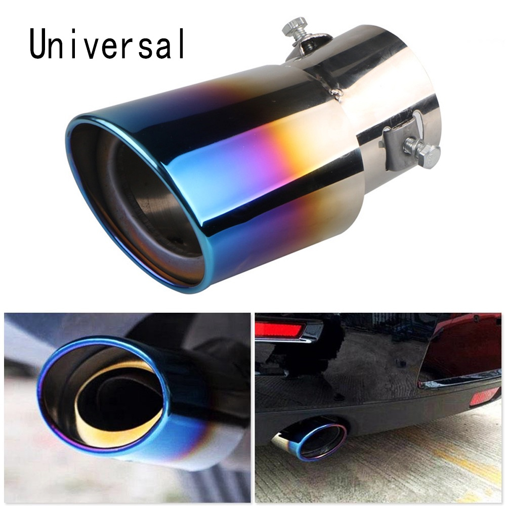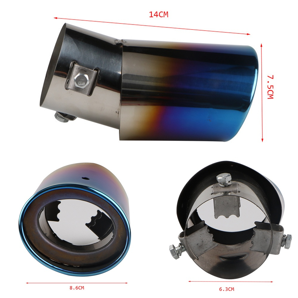 Universal Half Blue Car Exhaust Muffler Tip Round Stainless Steel Chrome Tail Muffler Exhaust Tip