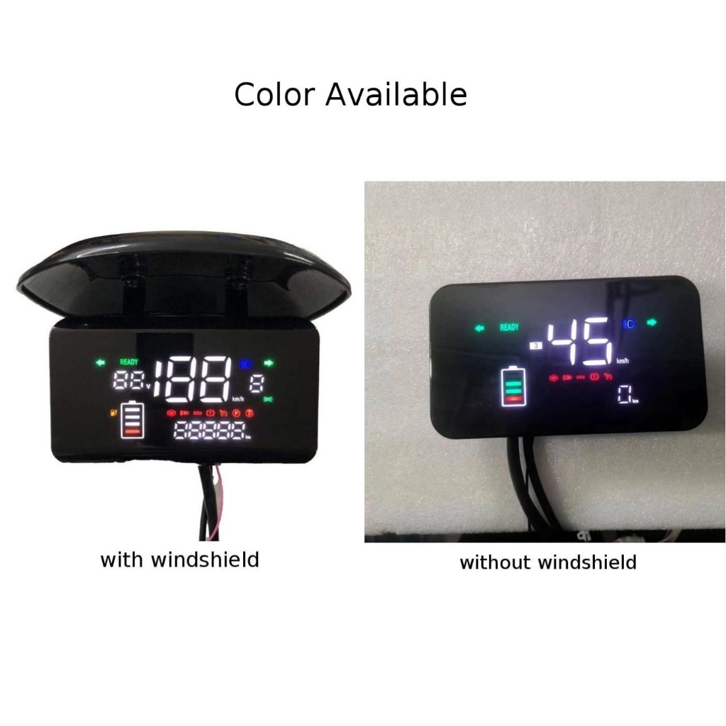 Universal LCD Digital Speedometer Display Panel With Windshield For Ebike Scooter - 48V 60V 72V