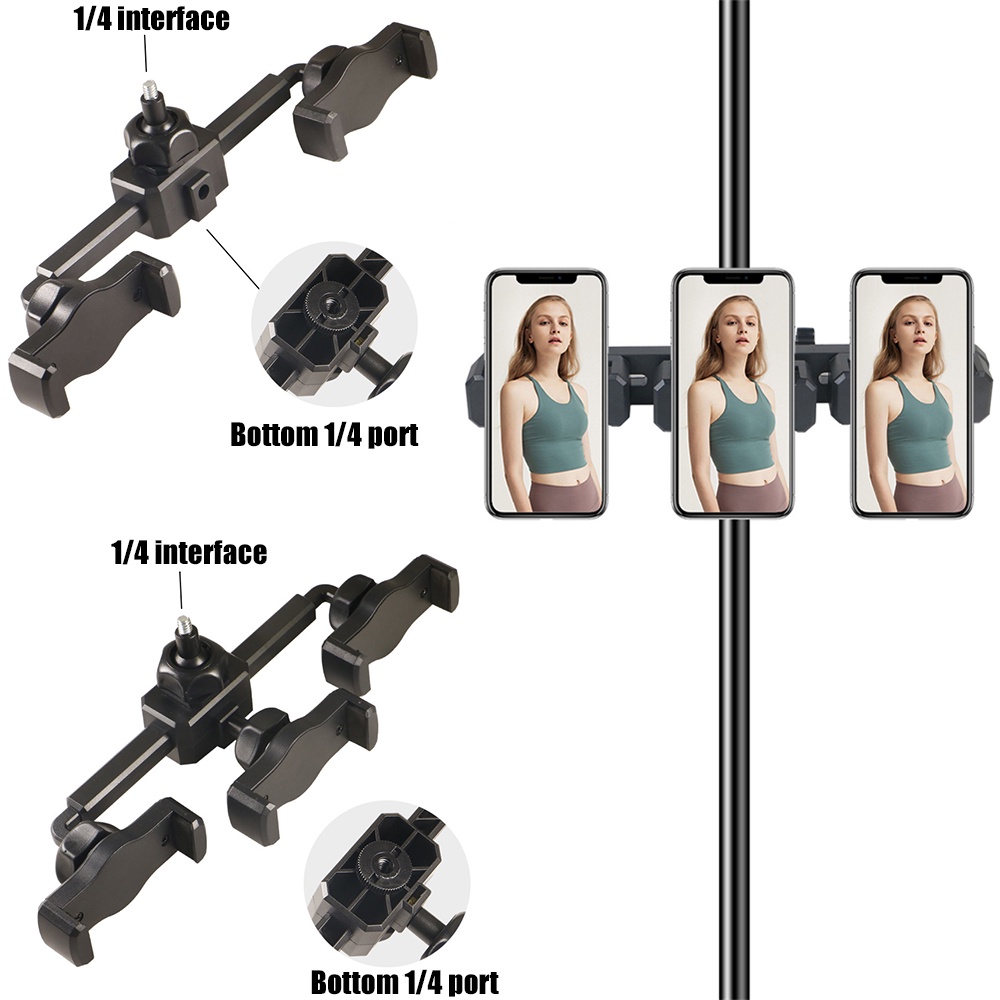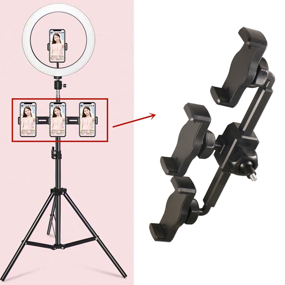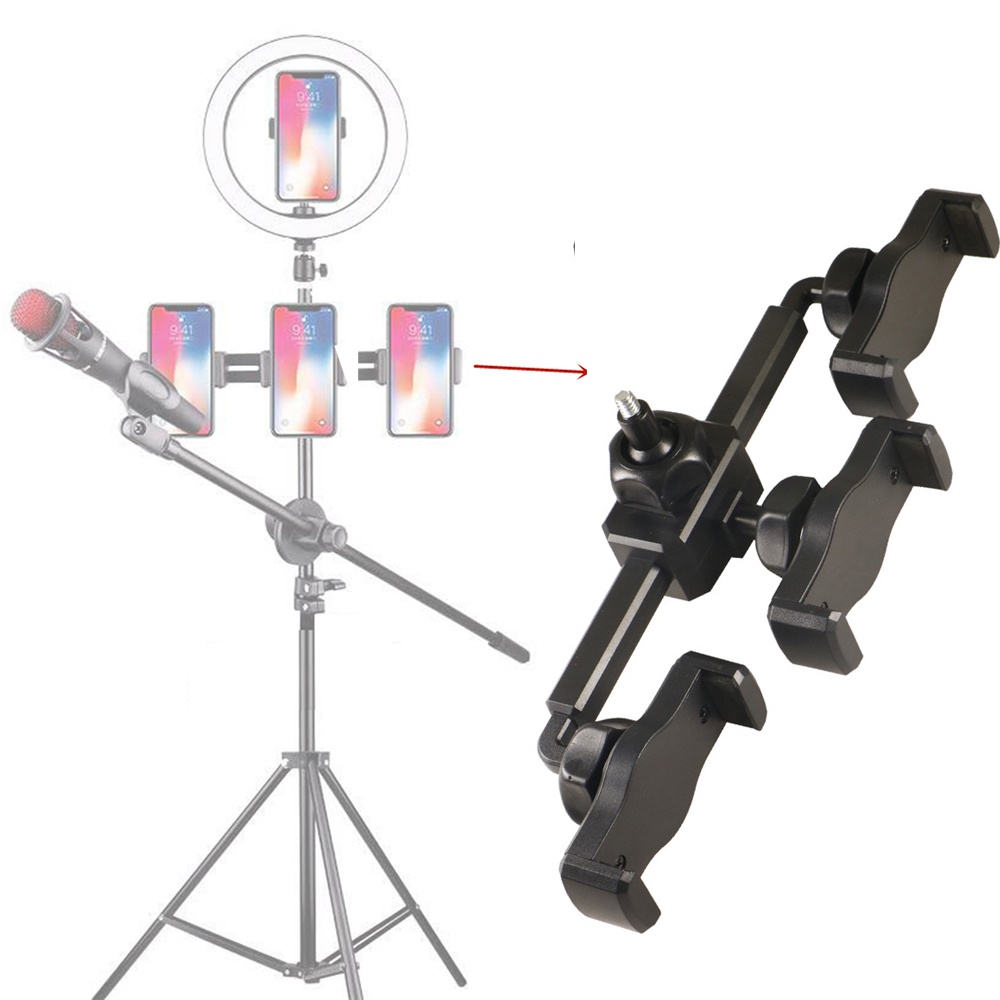 Universal Microphone Stand Mobile Phone Holder Clamp for Live Video Streaming Photography Showdouble seat triple seat