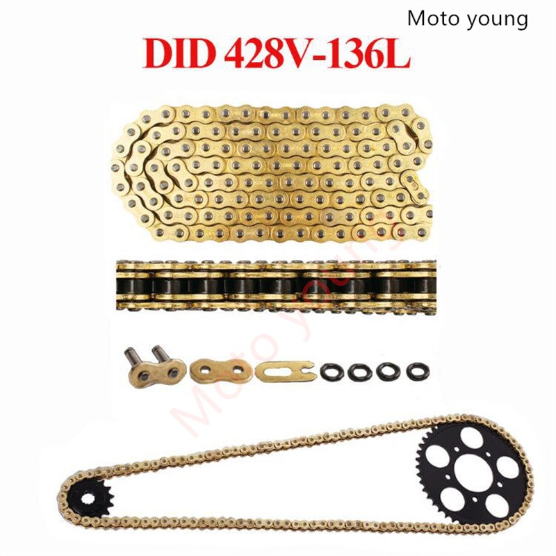 Universal Motorcycle Chain NO Oil Seal Golden Chain DID Oring 520 525 530 428 Chains 120 136 Links