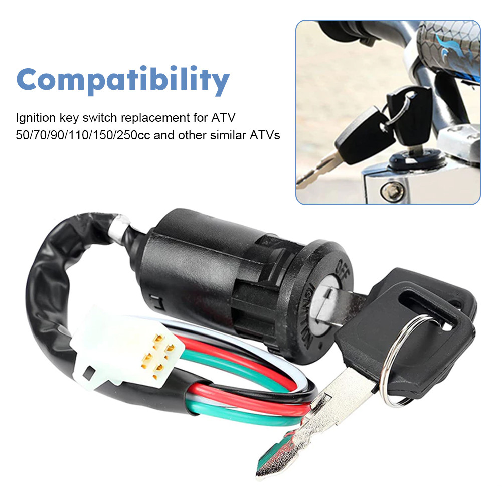 Universal Motorcycle Ignition Key Switch 4 Wires ATV 50-250cc Beach Buggy with Female Plug-in Ignition Key Switch