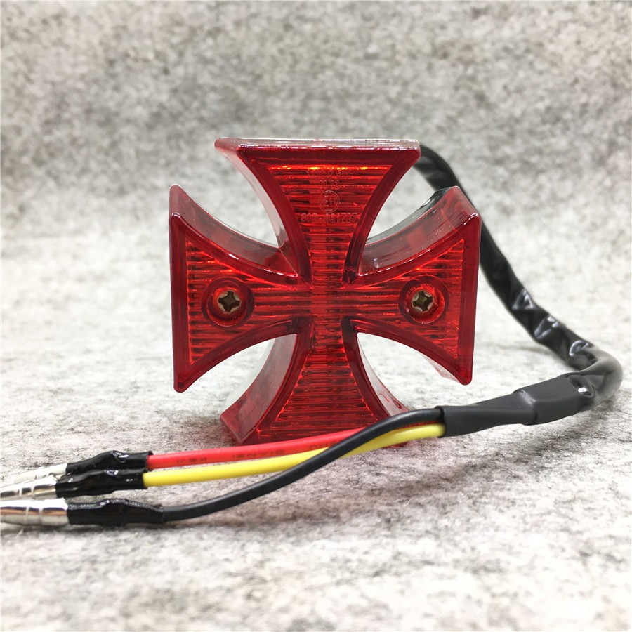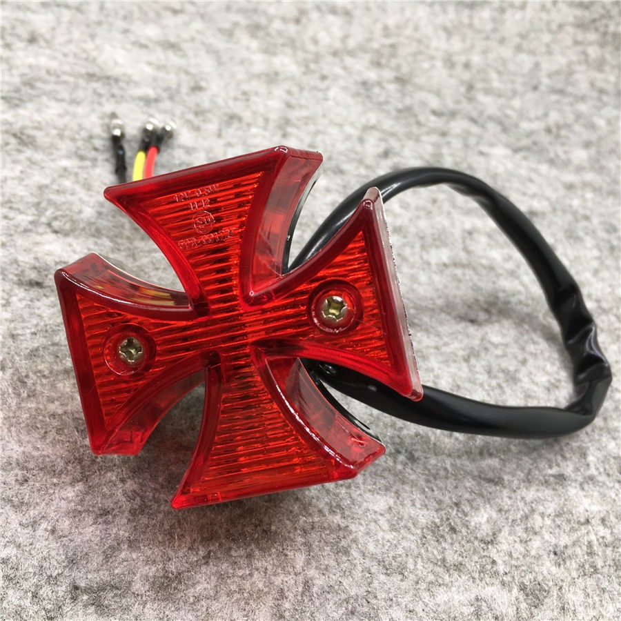 Universal Motorcycle LED License Plate Light Brake Stop Lamp Mini Maltese Cross Scooter Rear Tail Light For KTM Honda