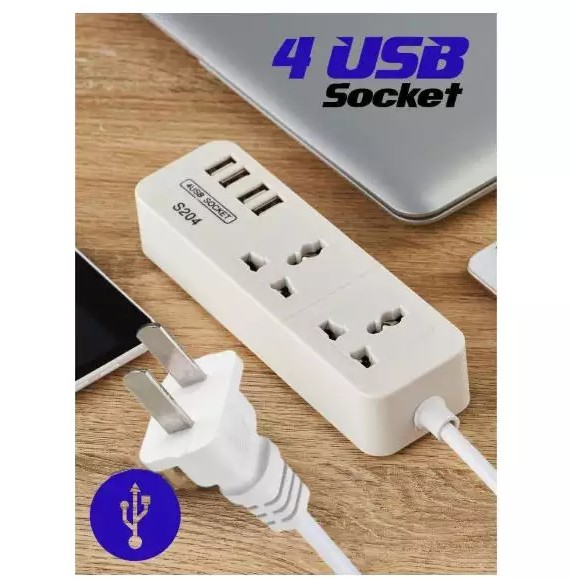 Universal Multifunction Smart Power Socket 5V-4A with 2 Plug Sockets & 4 USB Ports