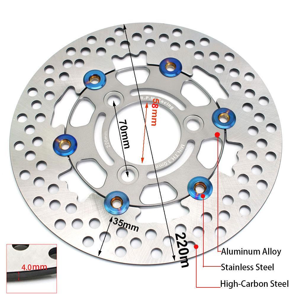 Universal RPM 220mm Brake Caliper Disc Rotor Disk Floating 3 Hole Pitching 70 for Street Bike Pedal Bike Pitbike Honda Yahama