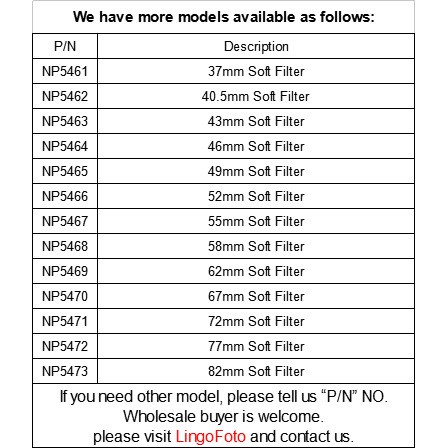 Universal Soft Lens Filter Dreamy Hazy Soft Focus Lens Filter 37 40.5 43 46 49 52 55 58 62 67 72 77 82 mm Soft Lens Filter NP5461-NP5473