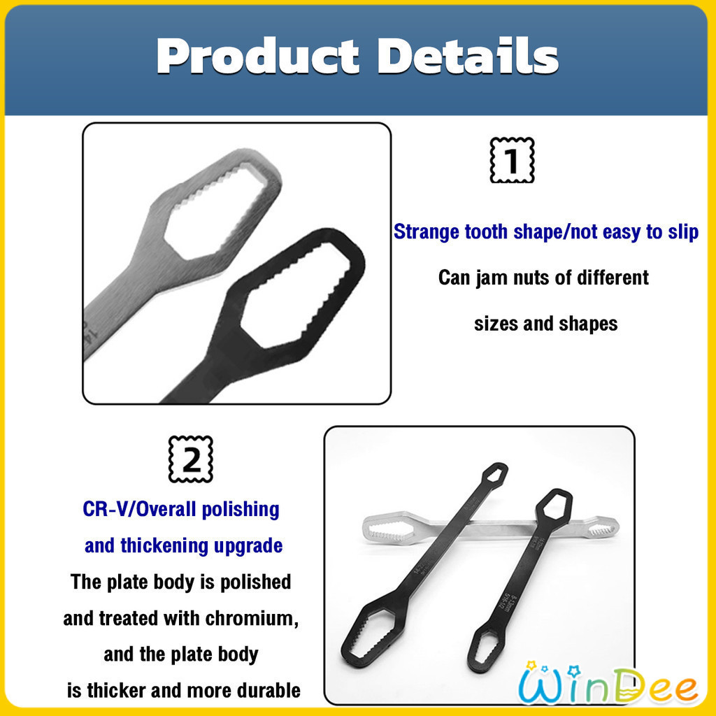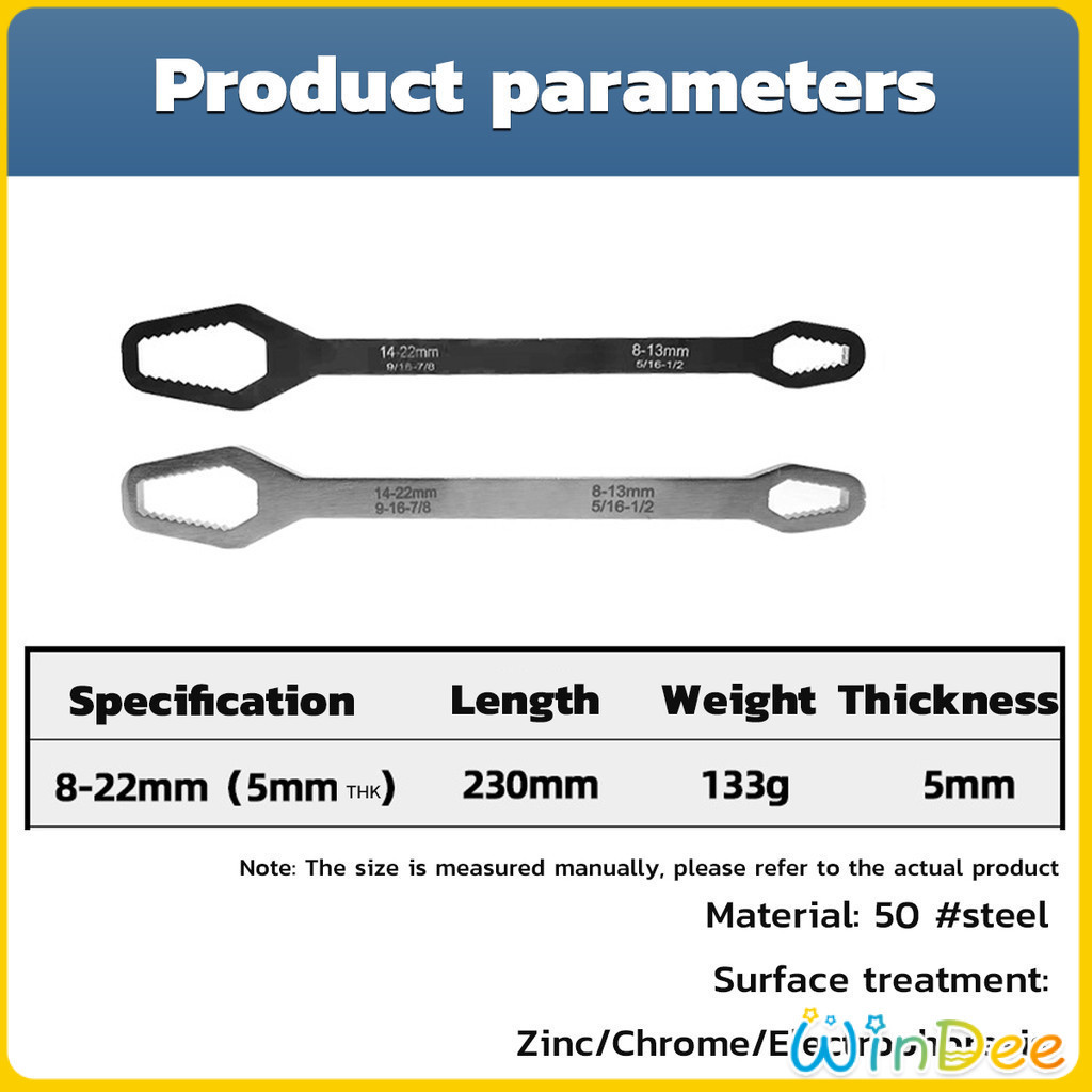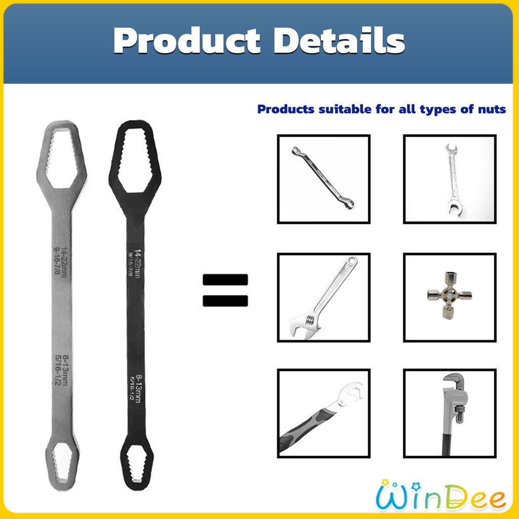 W.D. Universal Torx Wrench Adjustable Ratchet Spanner Double Head Screws Key Nuts Wrench 8-22mm