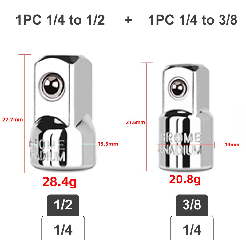 Universal joint adapter, socket swivel, Socket adapter, size converter, ratchet wrench accessory, 1/4" 3/8'' 1/2" socket wrench converter, angled socket tool.