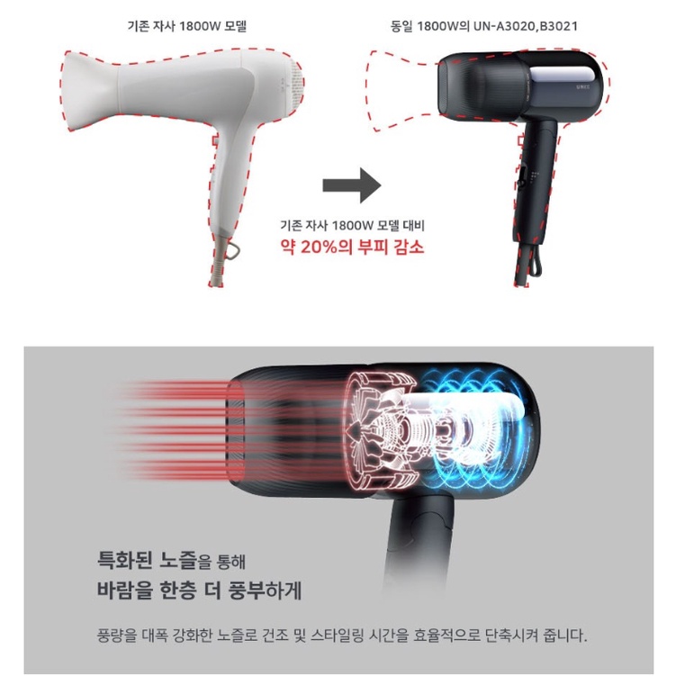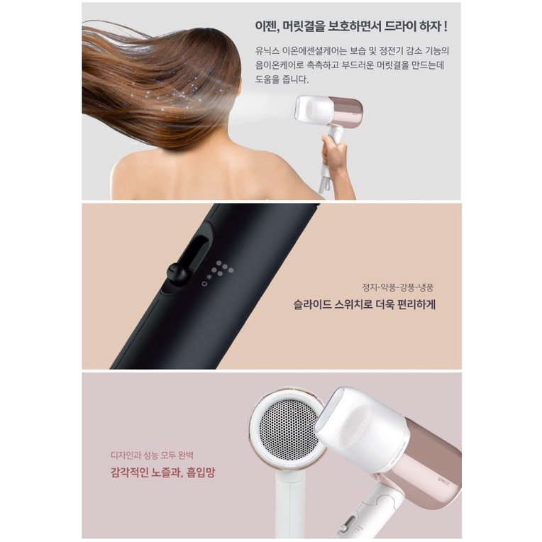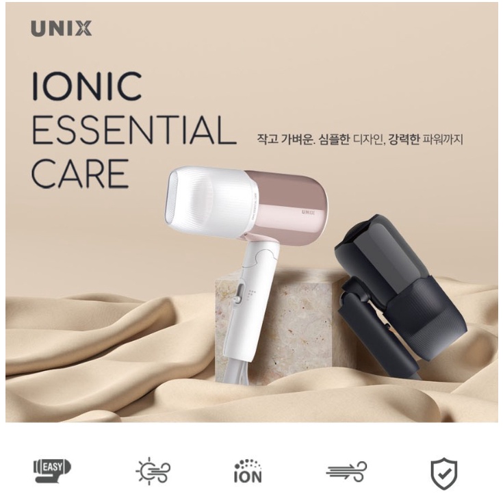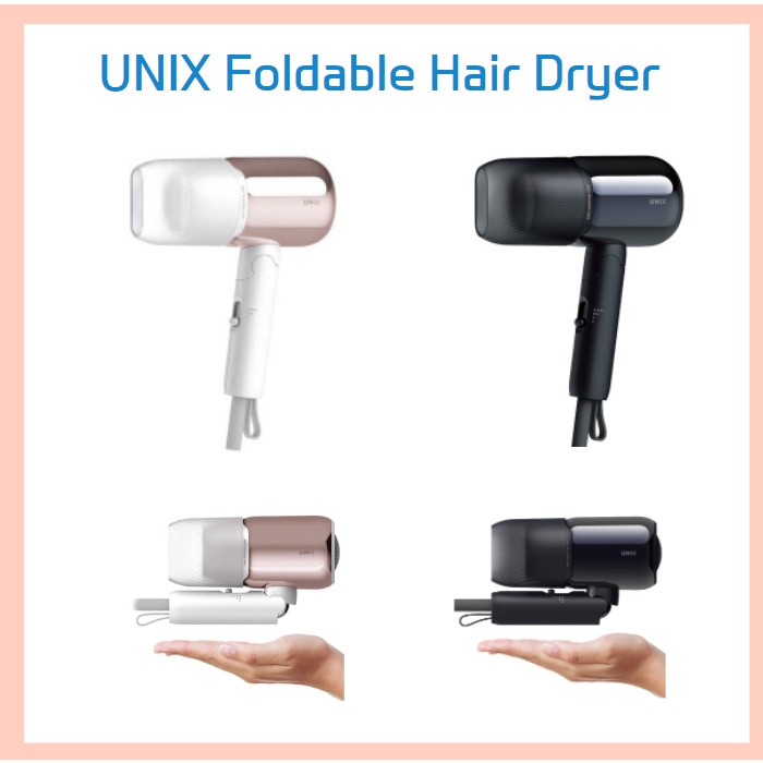 Unix KOREA UN-A3020/B3021 Foldable Hair Dryer 1800W IONIC ESSENTIAL CARE Strong Wind BLACK White