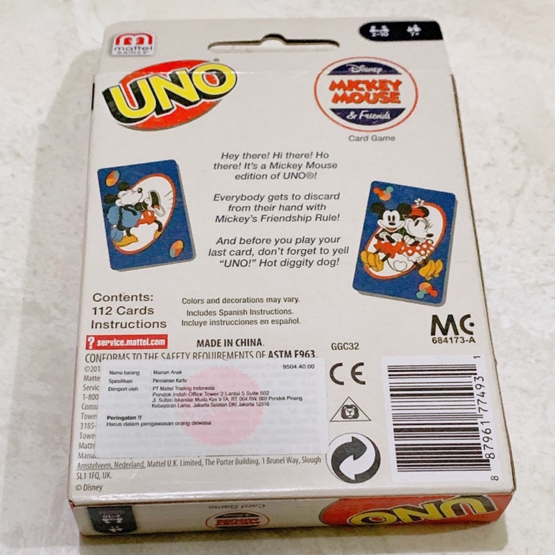 Uno Disney Mickey Mouse and Friends Mattel | Uno Original Mattel Card