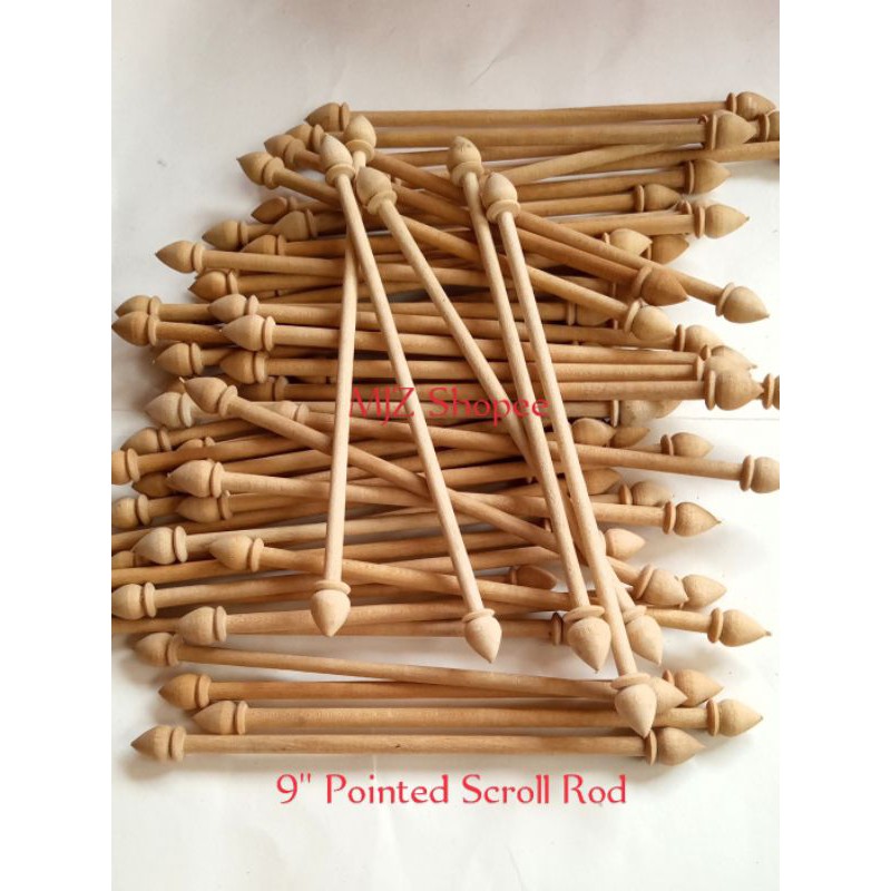 Unpainted Wooden Scroll Rod (Pointed Tip) 9" (50pcs)