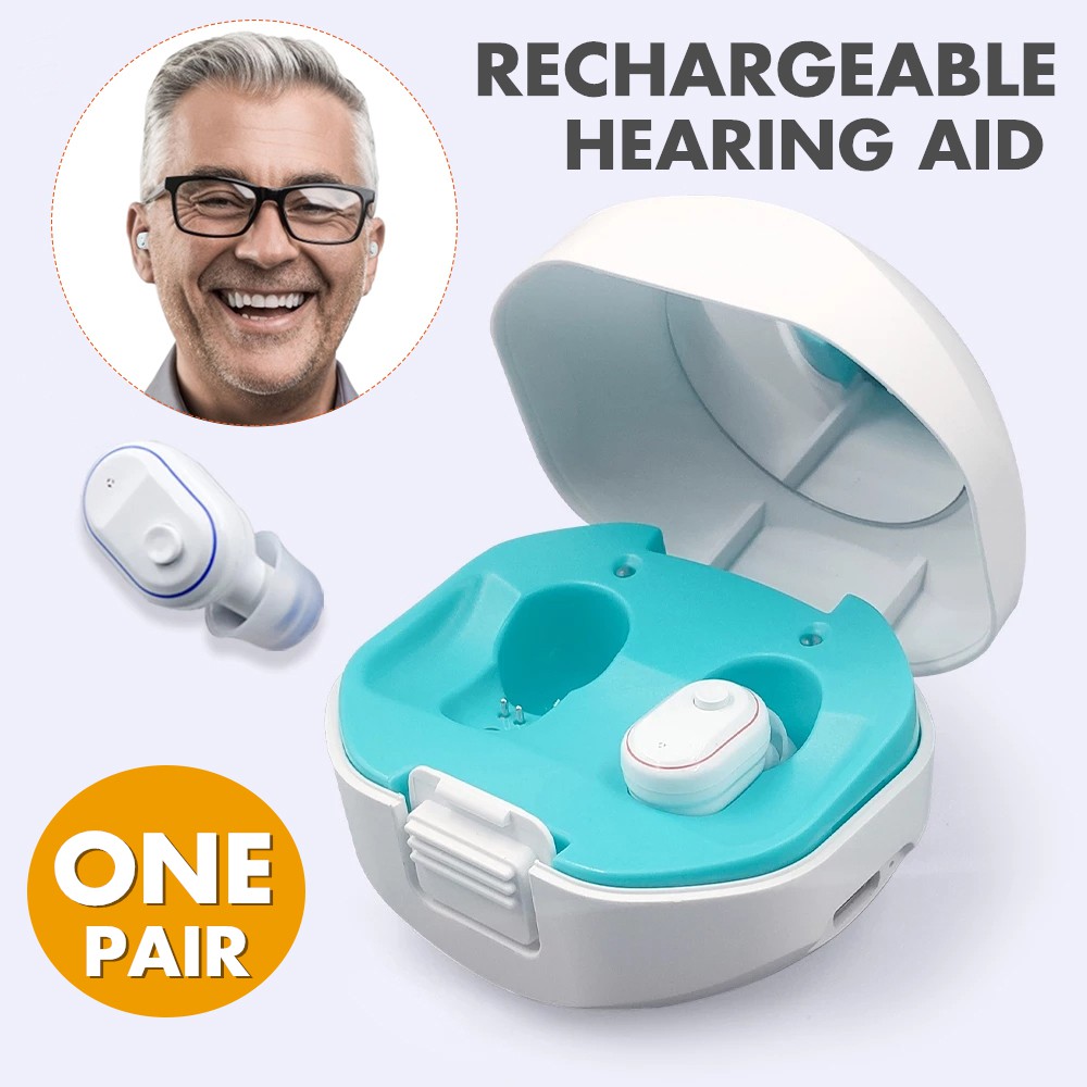 Upgrade 1 Pair Wireless Digital Rechargeable Hearing Aids Portable Mini Sound Amplifier with Charging Case High Quality