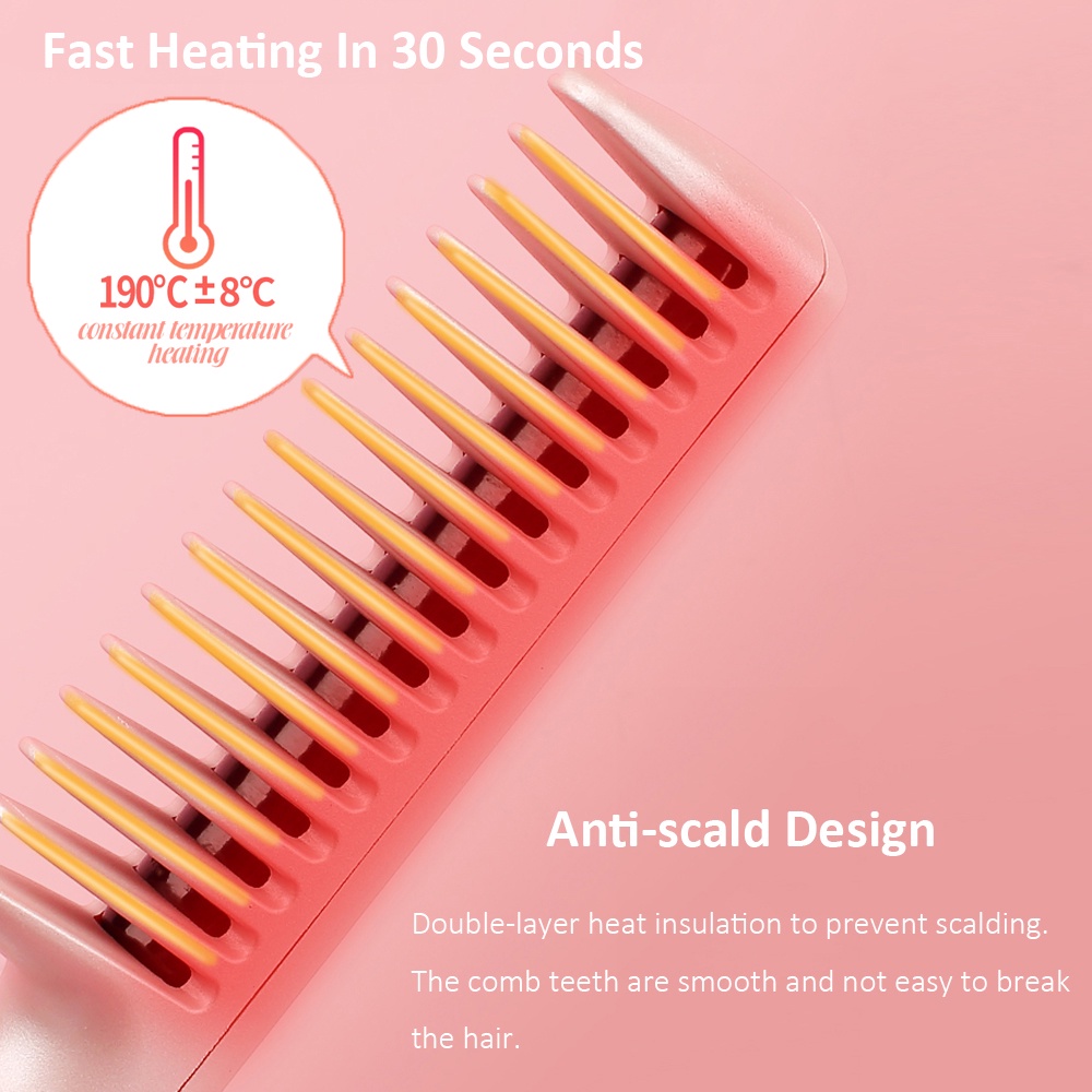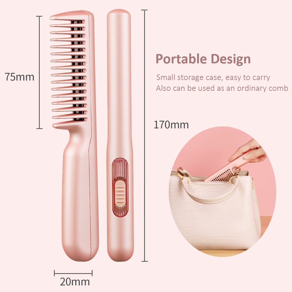 Upgraded Wireless Cordless Portable Rechargeable Women Hair Straightening Curling Brush USB Anti-scald Electric Heated Men Beard Straightener Comb Hairbrush