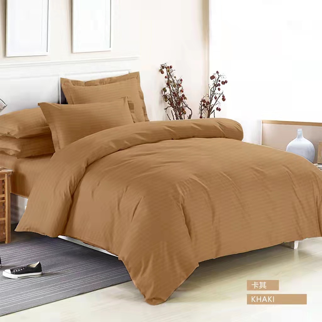 Us Cotton 4In1 Stripe KHAKI Bedsheet Set Hotel Quality zipper garterized queen king double sing